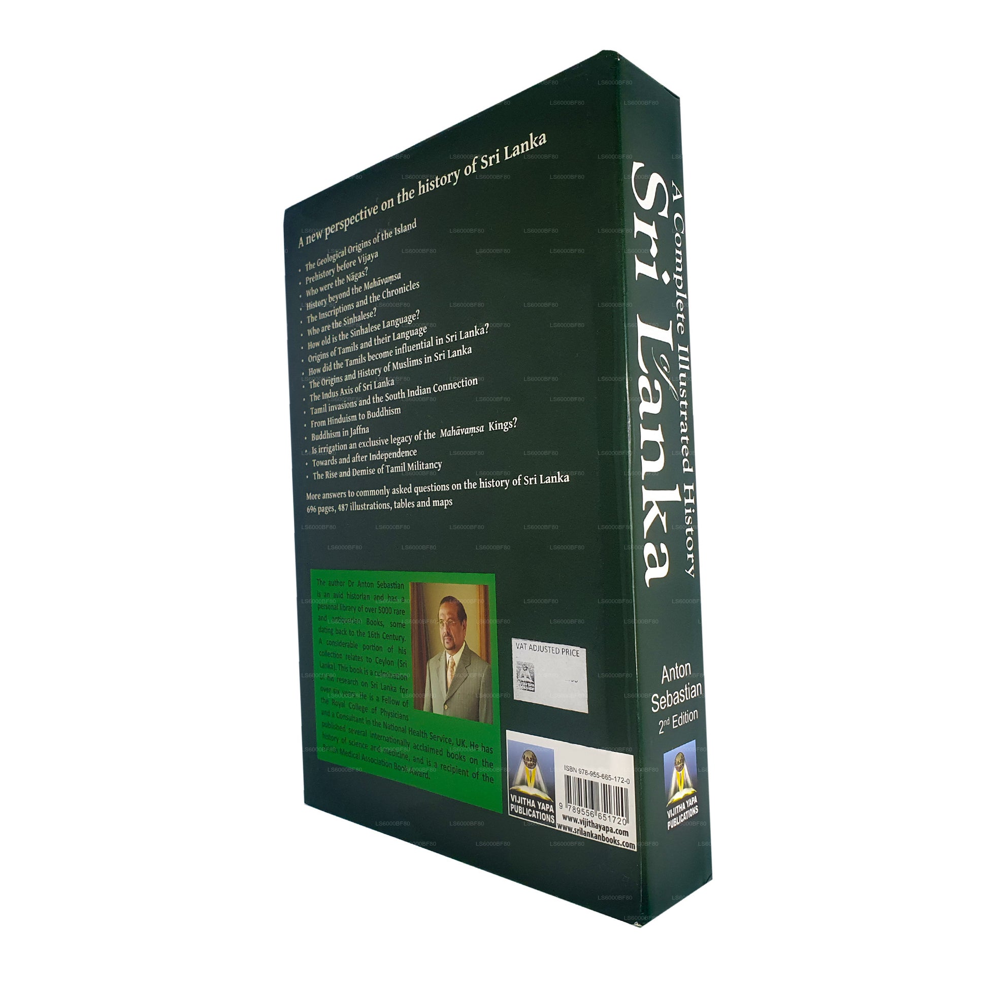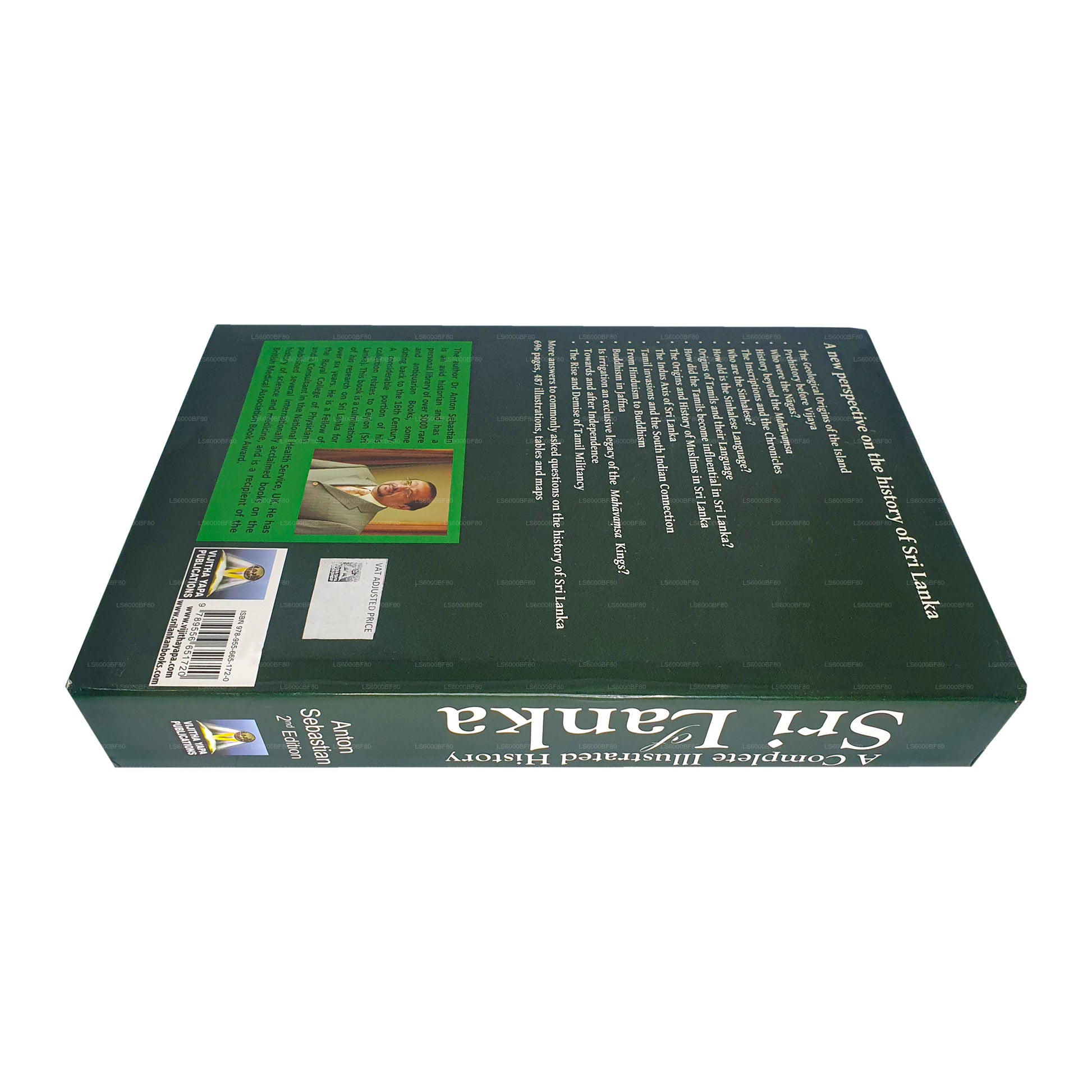 (SKU: LS6000BF80) „Kompletní ilustrovaná historie Srí Lanky“ Antona Sebastiana je 696stránková kniha v pevné vazbě, která poskytuje komplexní a vizuálně podmanivý průzkum historie Srí Lanky. Pokrývá témata od geologického původu po prahistorii, civilizaci Nāga, etnické komunity, tamilský vliv, náboženské přechody a moderní historii. S 487 fotografiemi a ilustracemi nabízí kniha čerstvý a podrobný pohled na složitou minulost Srí Lanky, což z ní činí neocenitelný zdroj pro nadšence historie a vědce.