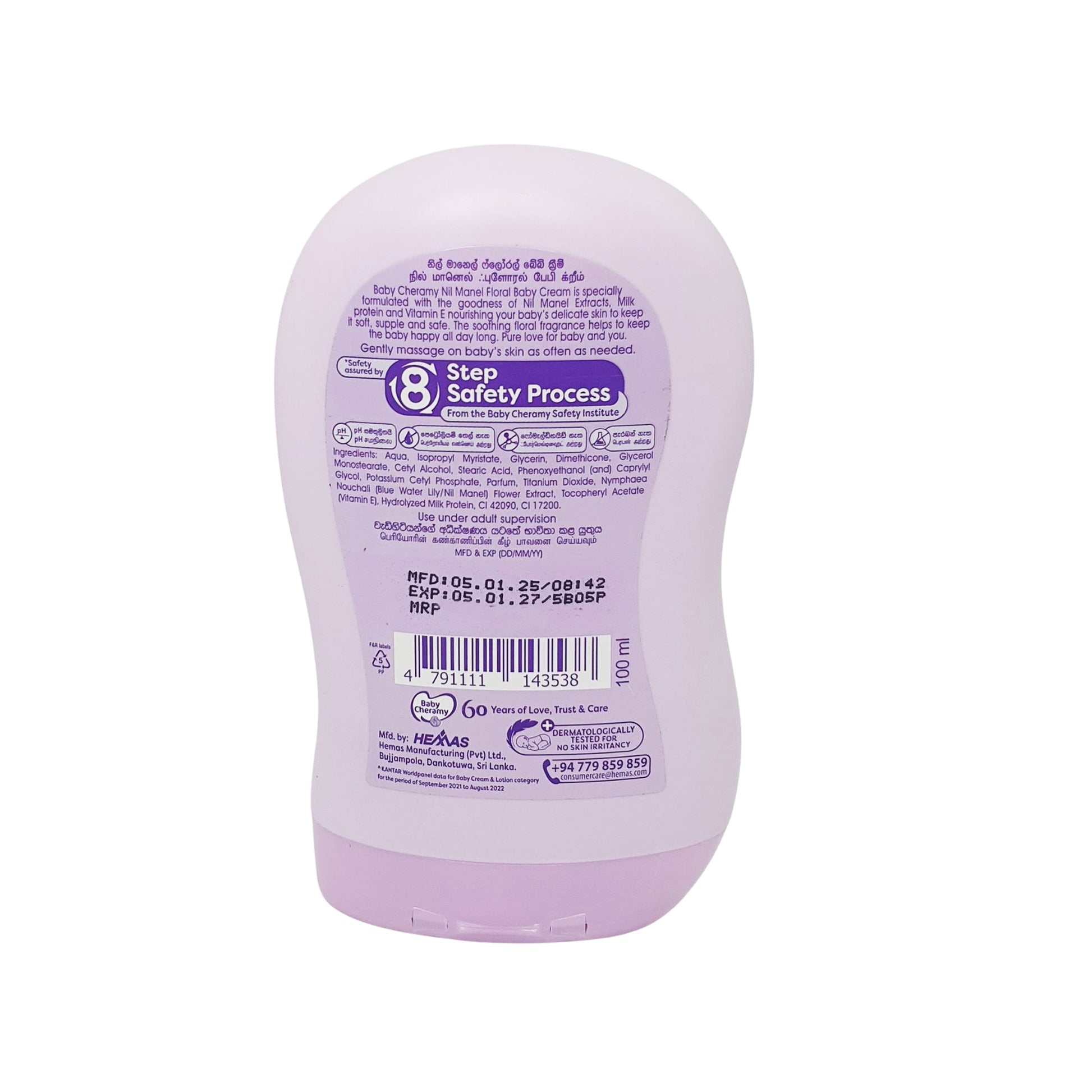 Představujeme Baby Cheramy Floral Baby Cream, jemnou recepturu obohacenou o výtažky Nil Manel, mléko a vitamín E pro výživu a ochranu jemné pokožky vašeho dítěte. Krém hydratuje, zklidňuje a zanechává pokožku jemnou a pružnou. Jeho květinová vůně udržuje dítě po celý den šťastné. Dermatologicky testovaný a hypoalergenní, je bezpečný pro citlivou pokožku