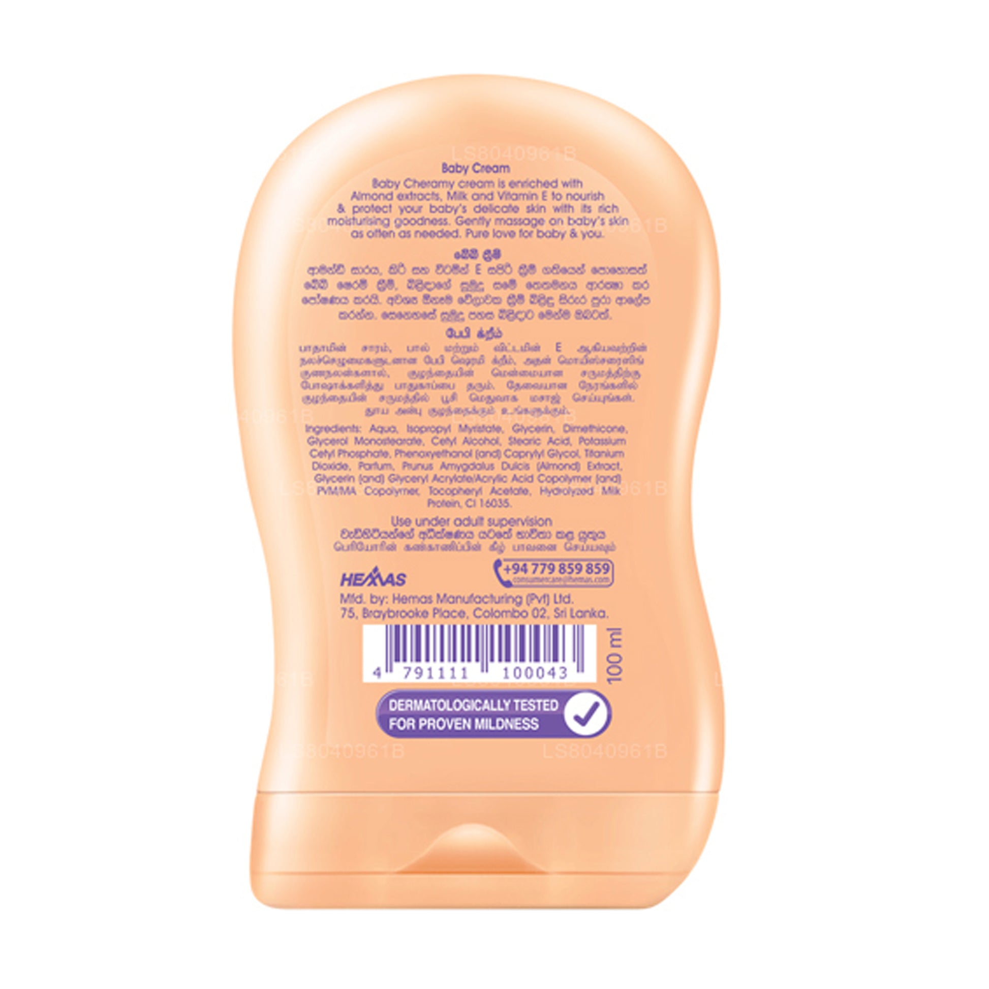 (SKU: LS8040961B) Baby Cheramy Baby Cream je speciálně formulován s obsahem mandlových extactů, mléčných proteinů a vitamínu E, vyživuje jemnou pokožku vašeho dítěte, aby ji udržovala jemnou, pružnou a bezpečnou.