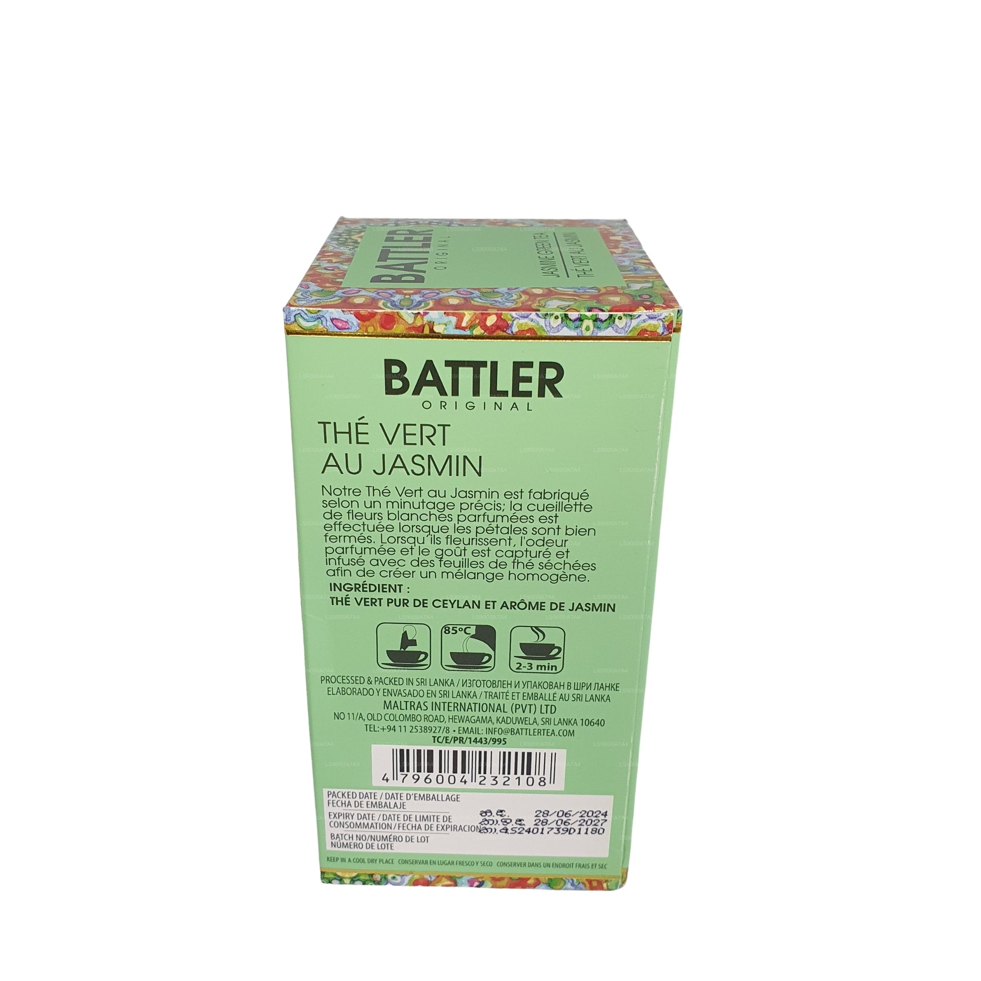 Battler Original Jasmine Green Tea dovedně mísí vonnou vůni jasmínových květů s vysoce kvalitním čistým cejlonským zeleným čajem. Květy se sklízejí, když jsou jasmínové okvětní lístky pevně uzavřené, a v průběhu rozkvětu se louhují do čaje, čímž se zachytí jejich nádherná vůně. Výsledkem je čaj se sladkou, květinovou vůní a jemnou, jemnou květinovou chutí. Malé, zelené lístky jsou středně velké a vytvářejí zelený likér, který nabízí osvěžující a uklidňující čajový zážitek. Každé balení obsahuje 20 čajových sáčků, ideálních pro ty, kteří oceňují jemné, parfémované chutě jasmínu ve svém zeleném čaji.