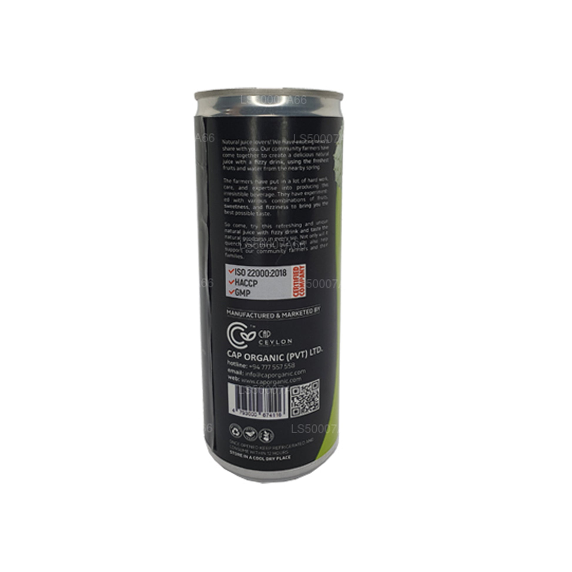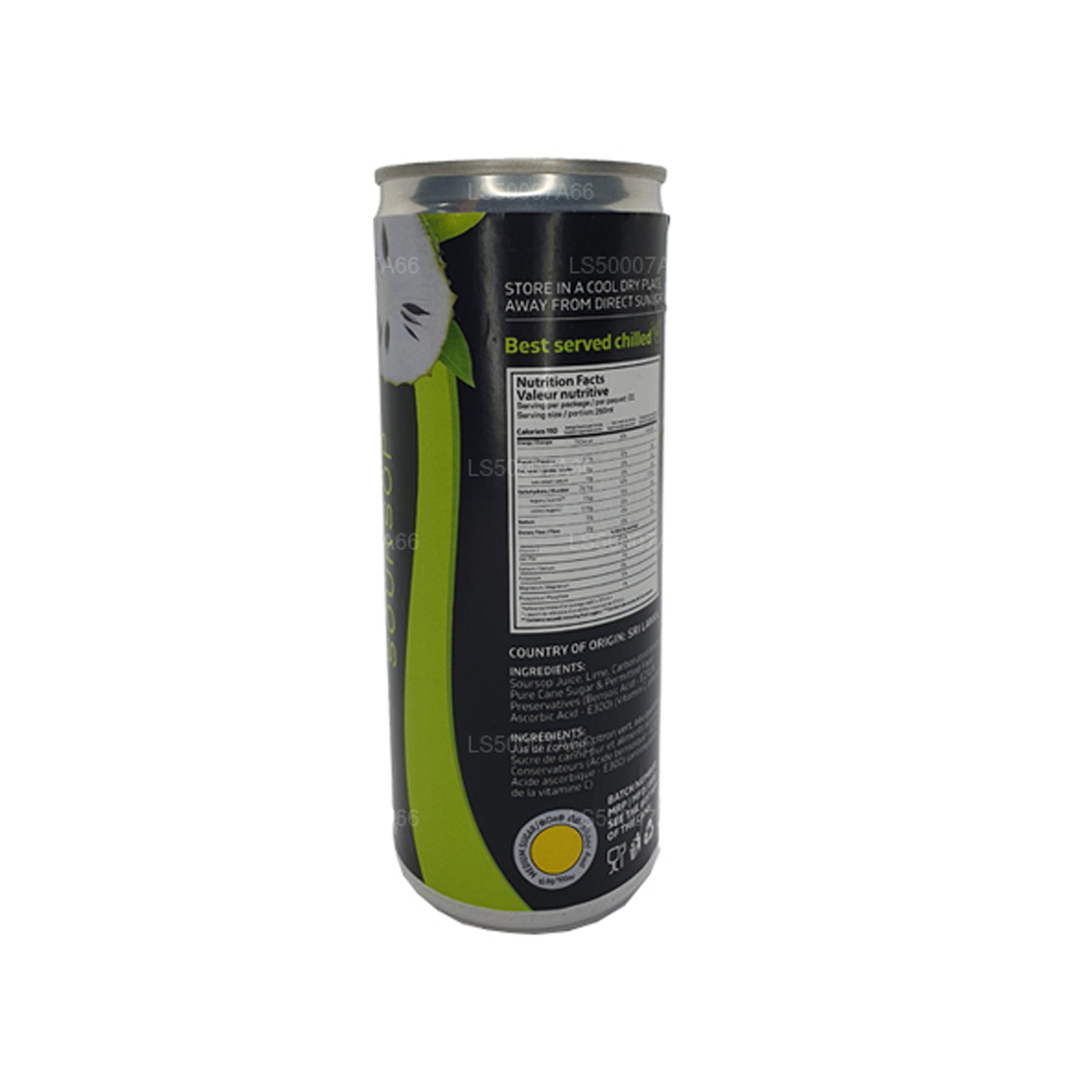 Ingredients: Soursop Juice, Lime, Carbonated Water, Pure cane sugar and Permitted food preservatives (Bensoic Acid-E210 and Ascorbic Acid-E300). (Vitamin C antioxidants).