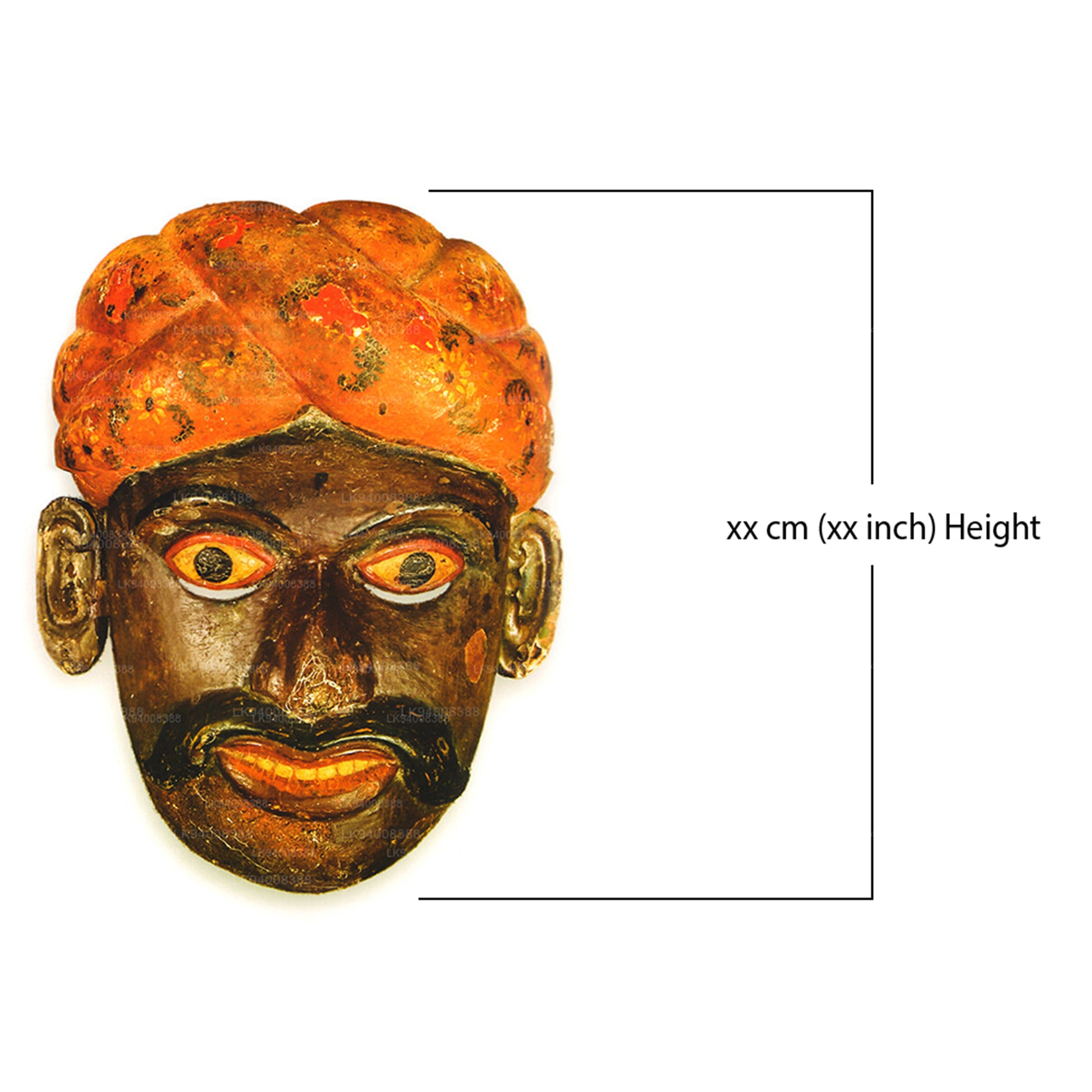 It is very attractive and large in size. The faces of the King and Queen are very large and beautiful. The upper portion has been carved exquisitely to which pieces of glass have been fastened. This is to show the grandeur and majesty of the King and his fame. On both sides of the face are Makara (Cupid) Thorana(pandals). The moustache has been curled upwards. On two sides of the chin are beards. Among these masks that of the King and Queen belonging to the hereditary family of Wijesuriya, are also very beautiful.