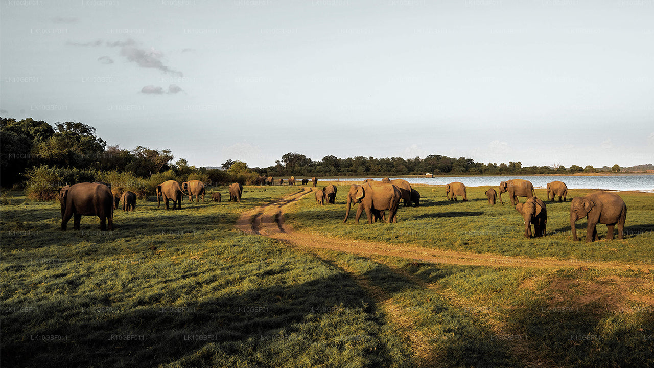 This safari takes you on a ride through the Minneriya National Park. Enjoy the sight of over 150 elephants congregating in one place during the famous Great Elephant Gathering, which happens in the dry season between May to October. In addition to elephants, get a chance to also see many mammals, birds, reptiles and amphibians in the scrublands, forests and other areas.
