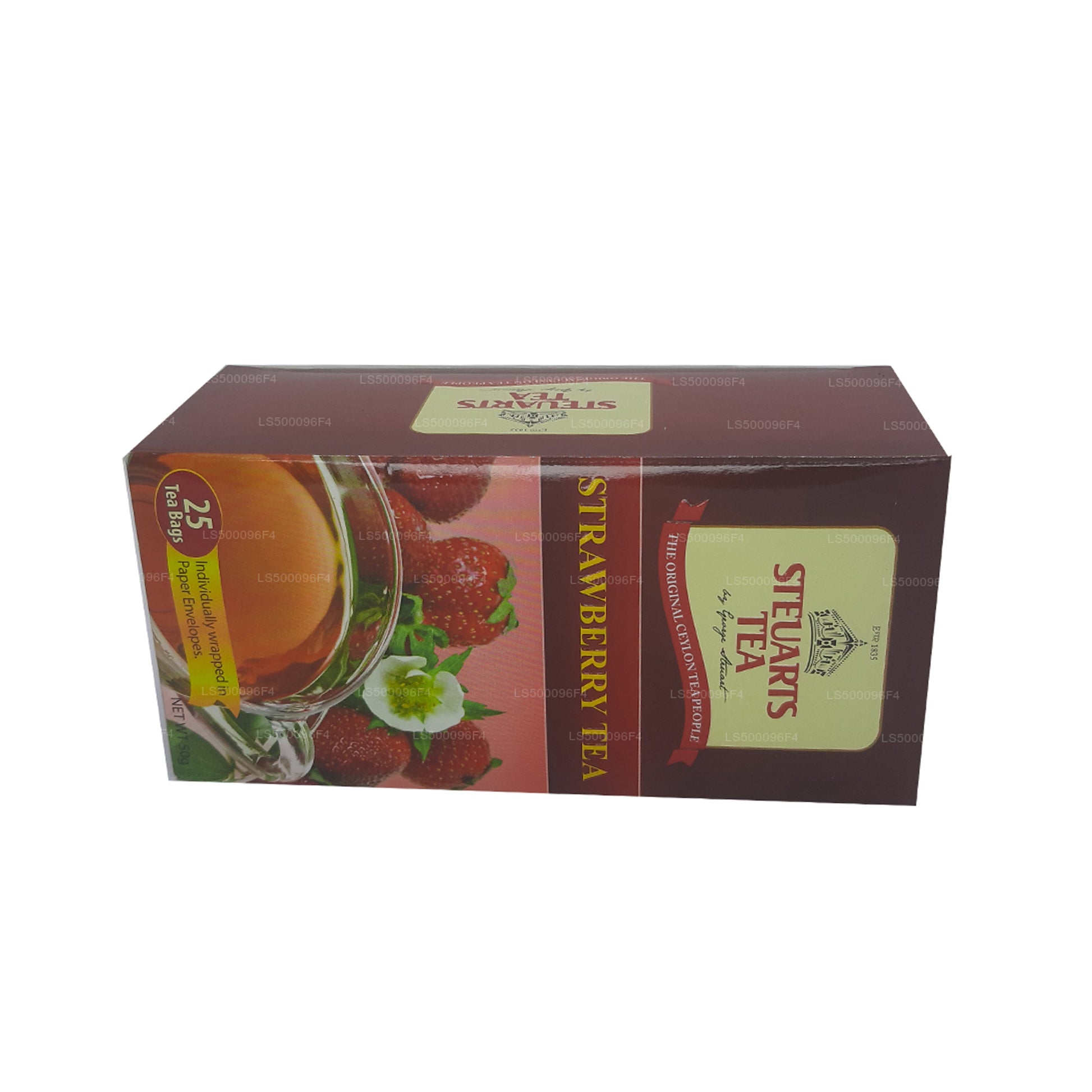George Steuart Strawberry Tea (50g) – 25 Tea Bags is a delightful blend of Pure Ceylon Black Tea infused with the sweet, fruity flavor of ripe strawberries. This aromatic tea delivers a smooth and refreshing experience with every sip, making it perfect for both hot and iced tea lovers.