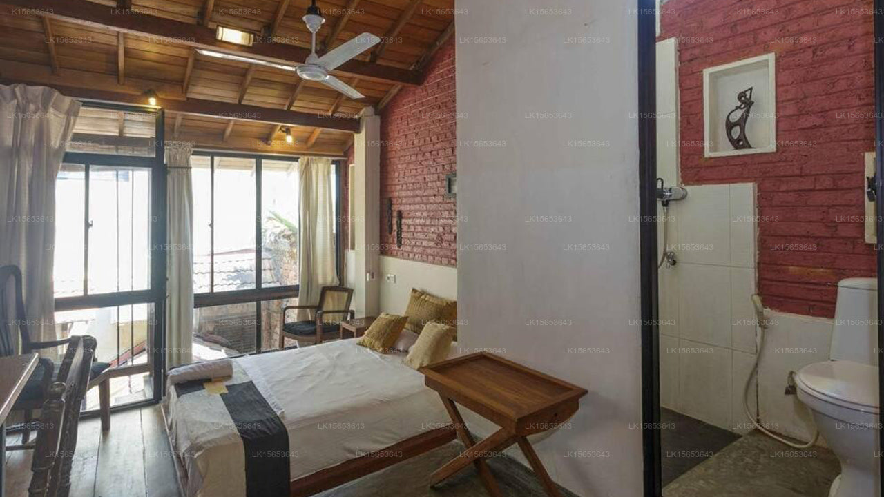 The guesthouse features a selection of rooms, including Single Rooms, Garden Suites, and Deluxe Suites. Each room is thoughtfully designed with elegant Sri Lankan decor, featuring wood-beamed ceilings, modern textiles, and attractive artwork. Amenities include air conditioning, mini-fridges, electric kettles, and en-suite bathrooms with rainfall showers. Some rooms offer private balconies or terraces overlooking the verdant gardens.