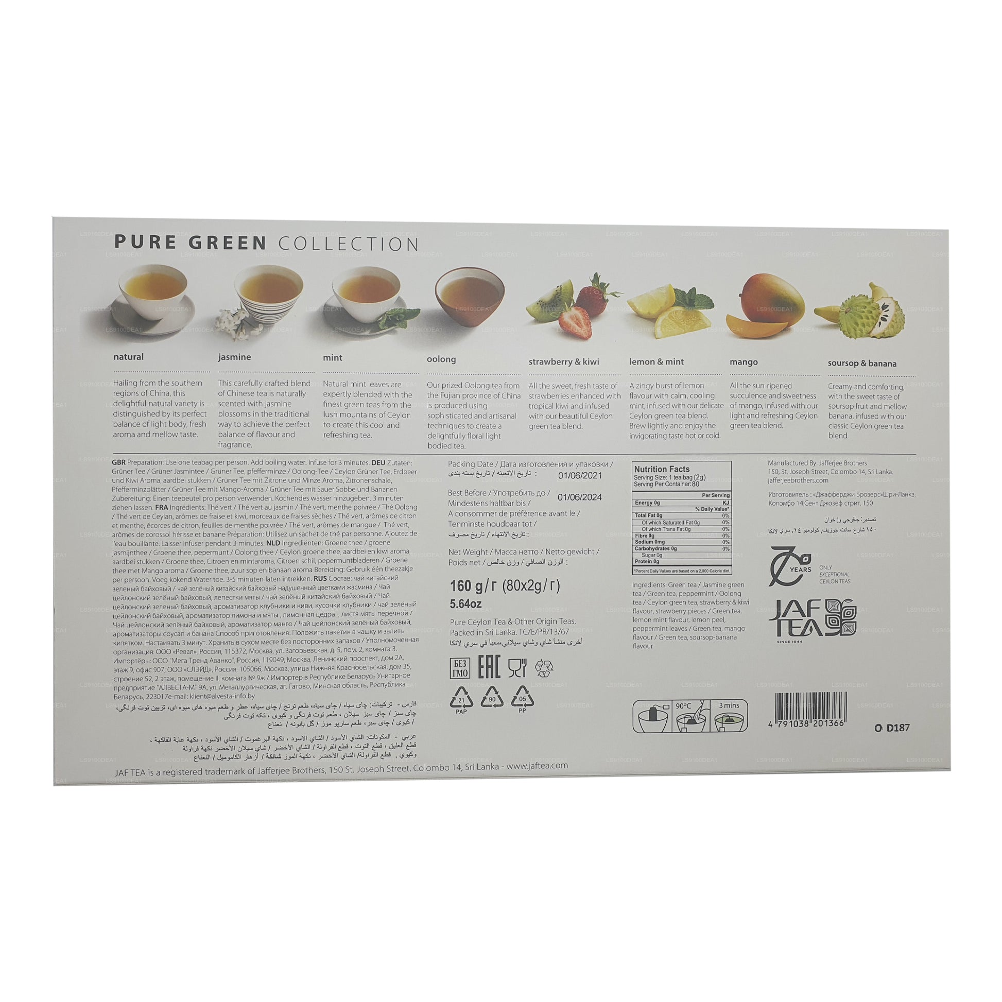 Jaf Tea Pure Green Collection (160g) 80 Foil Envelope Tea Bags
