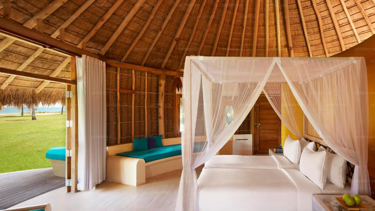 (SKU: LK150011C4) On the eastern edge of our teardrop-shaped island, an uncharted coastline separates our verdant lands from the pristine waters of the Indian Ocean. This harmonious relationship with nature is a story of complementary coexistence, effortlessly brought to life at our cabana resort in Pottuvil Point, a serene hideaway near the celebrated beaches of Arugam Bay.