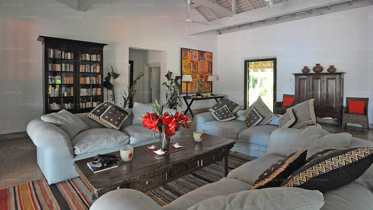 The villa features three bedrooms, accommodating up to six guests. Each room is designed in a traditional Sri Lankan style, offering comfort and a connection to the local heritage.