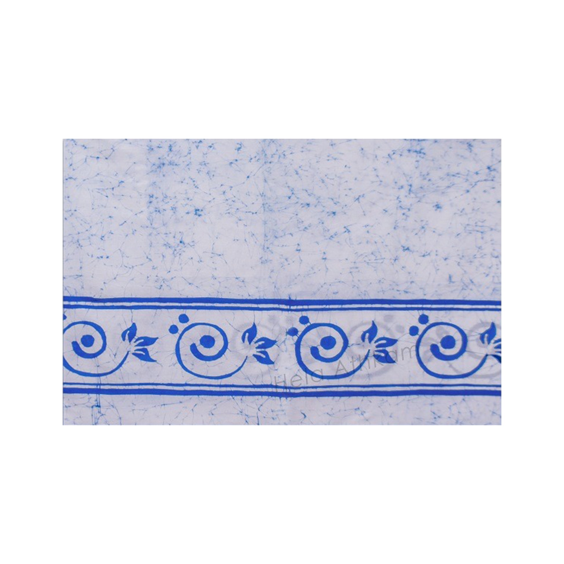 Lakpura® Batik Sarong (Design B007) is a simple Sri Lankan batik sarong featuring an elegant blue scroll pattern on a white background. 100% handmade using traditional Batik techniques, perfect for everyday wear or casual occasions.