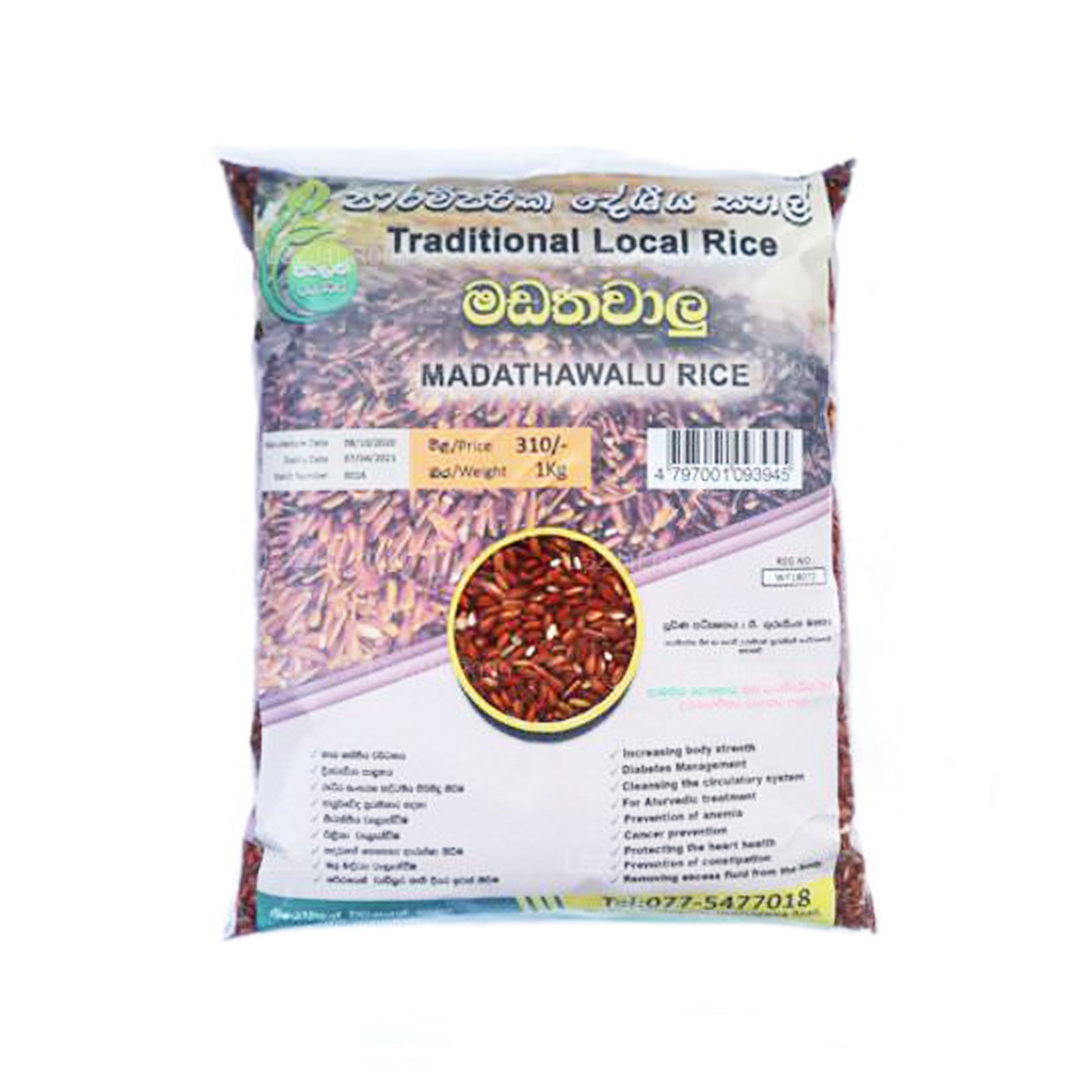 Madathavalu is a very popular variety of red rice traditionally grown in Sri Lanka. The plant grows to a maximum height of 130 cm. This crop can be harvested within 4 months after sowing. Madathaluwa plant costs 20 to 30 tillers and is considered to be the highest yielding traditional paddy variety in Sri Lanka. The available yield is about 110 bushels per acre and is currently cultivated in all parts of Sri Lanka. This variety works well as an organic crop. Traditionally it boosts the human immune system and is widely used in the treatment of diabetes. Scientific studies have shown that it has local medicinal properties in the treatment of diabetes and oxidative stress. Consumption with bran is important in obtaining such valuable nutritional and medicinal value. This rice is 100% organically grown. It is widely used in the preparation of baby food because it does not contain toxins.