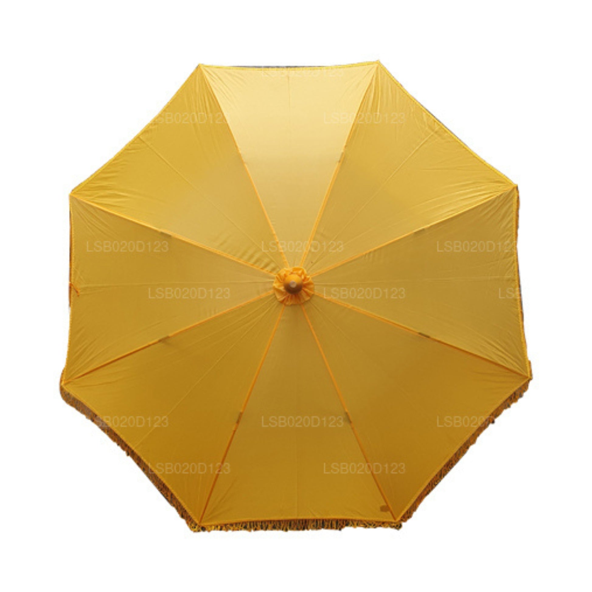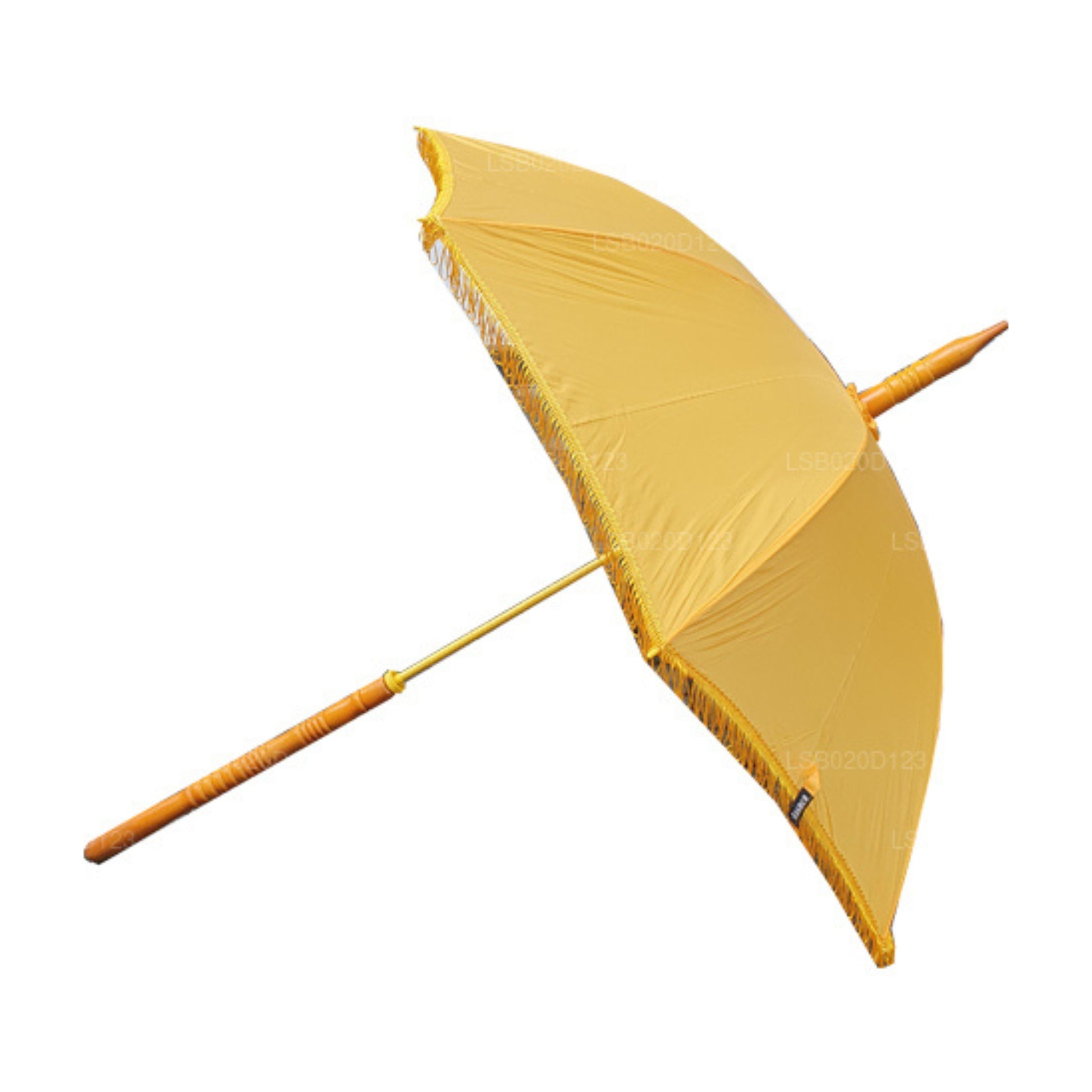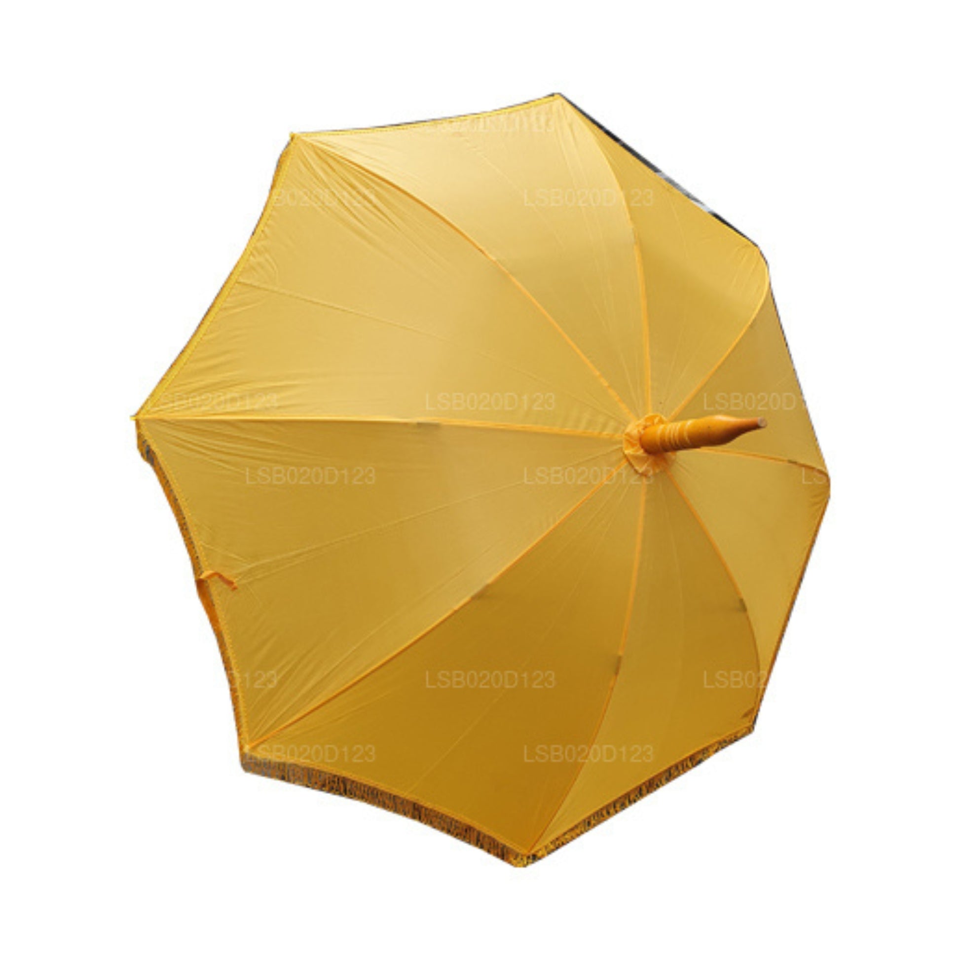 The most common purpose of an umbrella is to shade people from the sun or rain. However, there are various explanations in many cultures regarding the use of Umbrellas. The Lakpura Muthu Kuda is specifically used to act as a shield for Buddhist Monks from the various effects of nature. Simple designs are available while some are embroidered with triple pagodas.