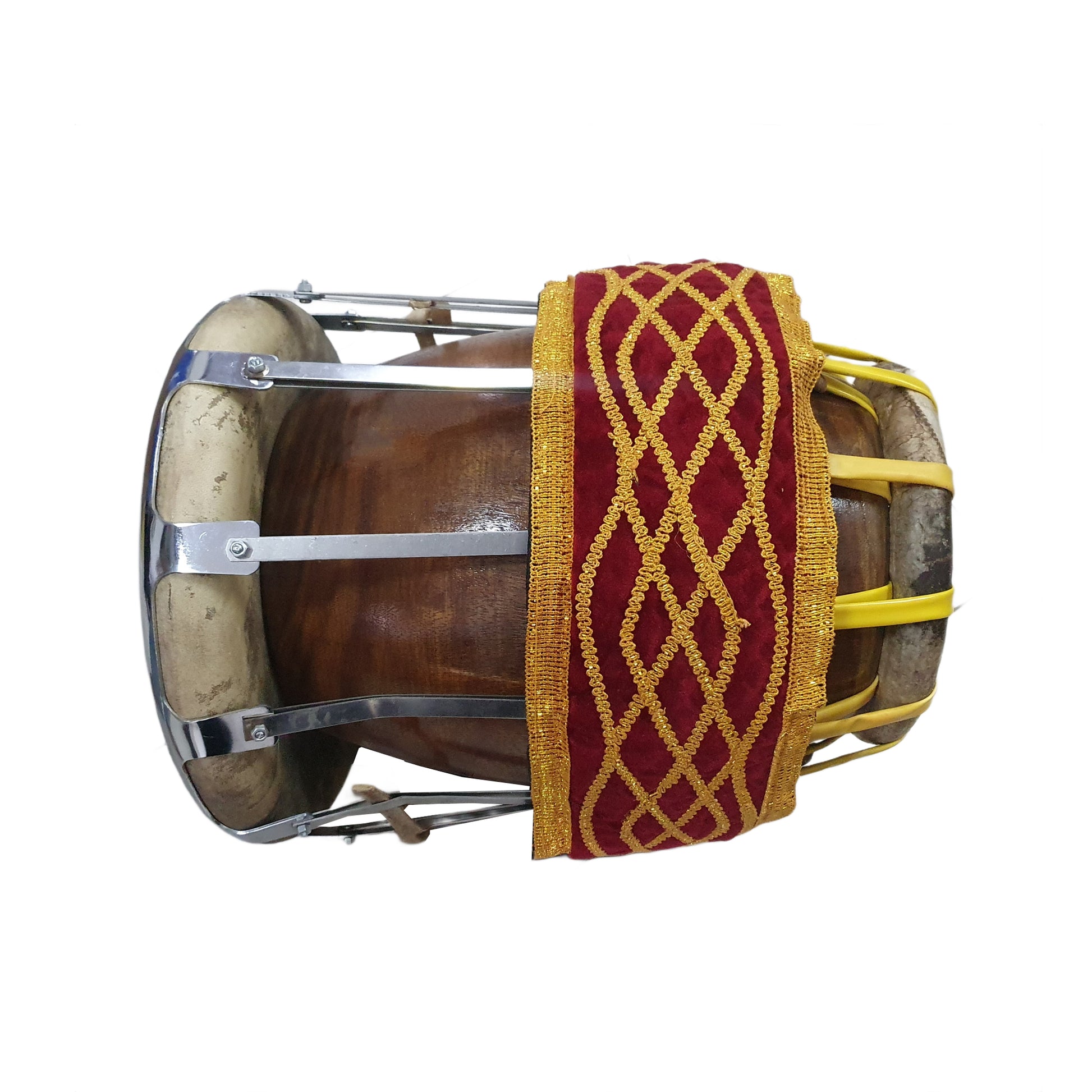 The Thavil Drum is either played standing or sitting while if standing, it can be hung by a cloth strap from the shoulder.