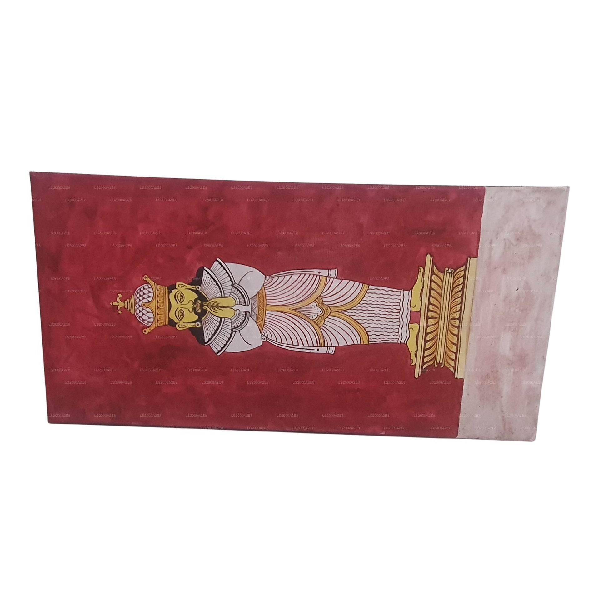 Celebrate the essence of Sri Lankan hospitality with this stunning wall art featuring the traditional Ayubowan greeting — a gesture symbolizing welcome, respect, and blessing. The artwork portrays a finely detailed figure standing gracefully with folded hands, wearing traditional attire that reflects the island’s cultural elegance. Set against a deep red background, it radiates warmth and spiritual harmony, making it an eye-catching addition to any home, office, or reception space.