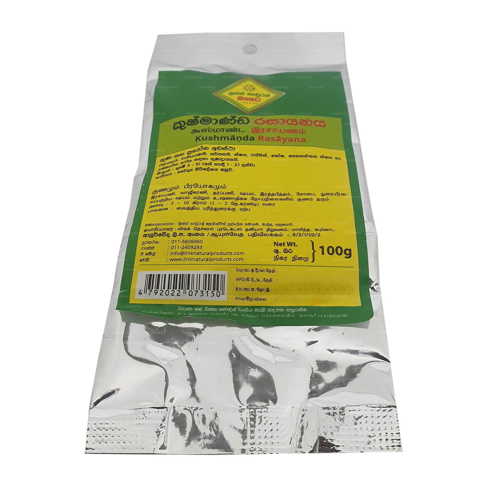 Link Kushmanda Rasayana je tradiční ájurvédský přípravek, který je ceněn pro své omlazující a výživné vlastnosti. Je vyroben z extraktů rostliny Kushmanda, známé také jako vosková tykev nebo zimní meloun, spolu s dalšími účinnými bylinami a přírodními složkami. Tento bylinný přípravek je známý svou schopností posilovat vitalitu a podporovat celkové zdraví a pohodu. Předpokládá se, že Kushmanda Rasayana vyživuje tělo, posiluje imunitní systém a podporuje zdravý metabolismus. Často se doporučuje lidem, kteří chtějí zvýšit hladinu energie, zlepšit trávení a udržovat optimální zdraví. Kromě toho může pomoci vyrovnávat dóši a podporovat dlouhověkost při pravidelném užívání jako součást vyváženého životního stylu.