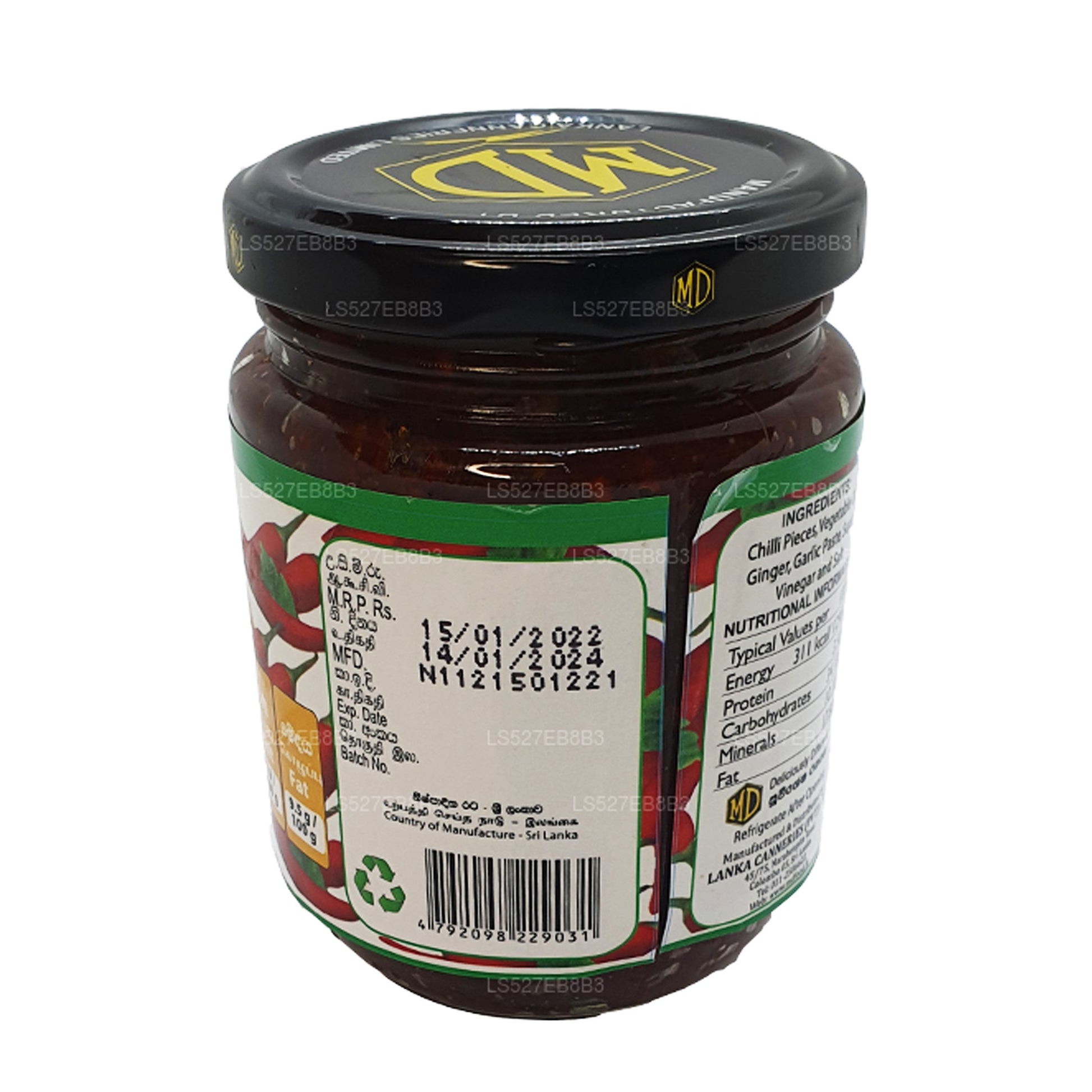 (SKU: LS527EB8B3) Všechny produkty MD byly vyrobeny pod přísnou kontrolou kvality. Výběr ovoce a zeleniny podléhá pečlivé kontrole, což zajišťuje, že MD šíří výtažek z výrobního procesu nejvíce z čistého ovoce a zeleniny. Výrobky MD jsou po generace oblíbenými produkty Srí Lanky a součástí jejich každodenní stravy.Složení:Kousky chilli, rostlinný olej, zázvor, česneková pasta, cukr, ocet a sůl