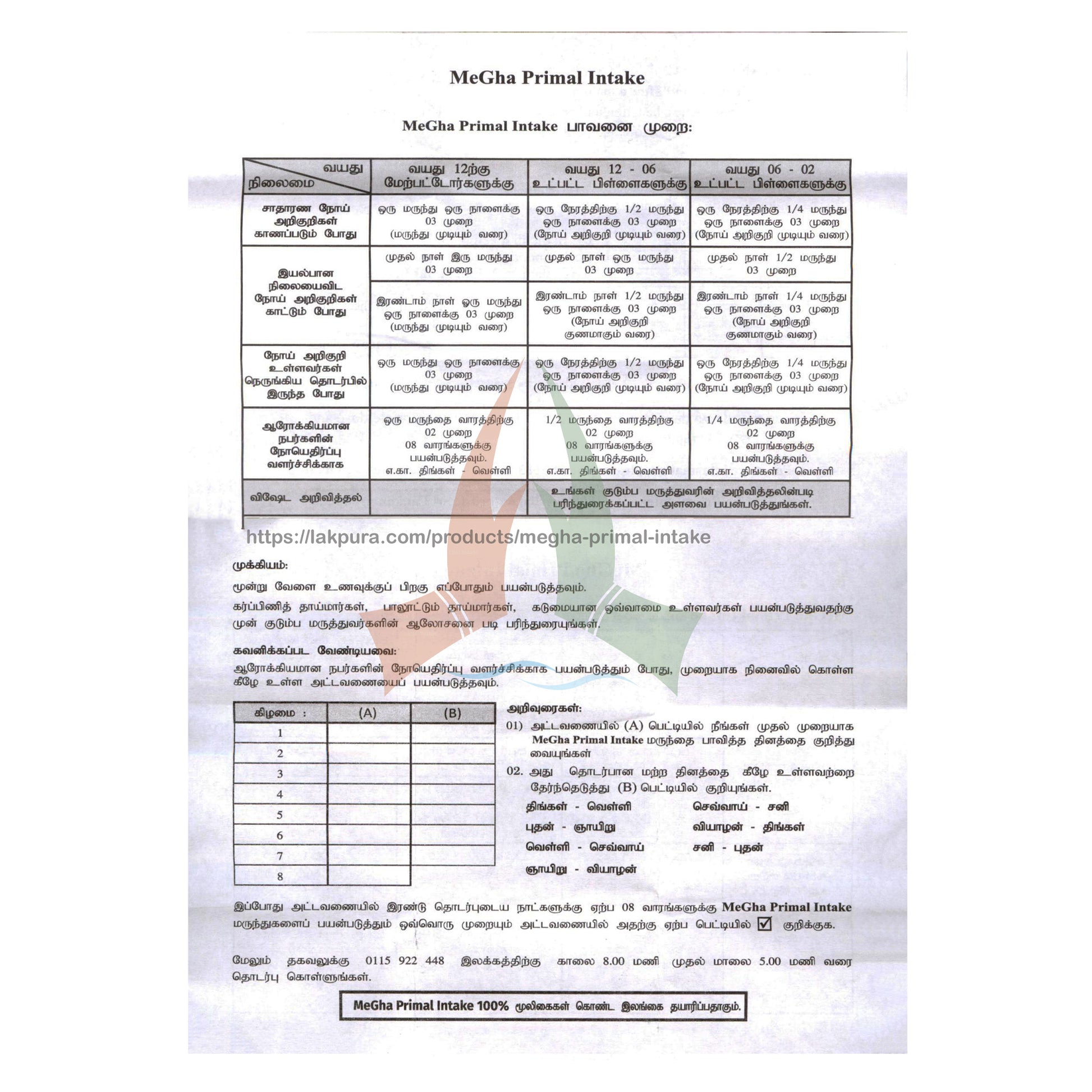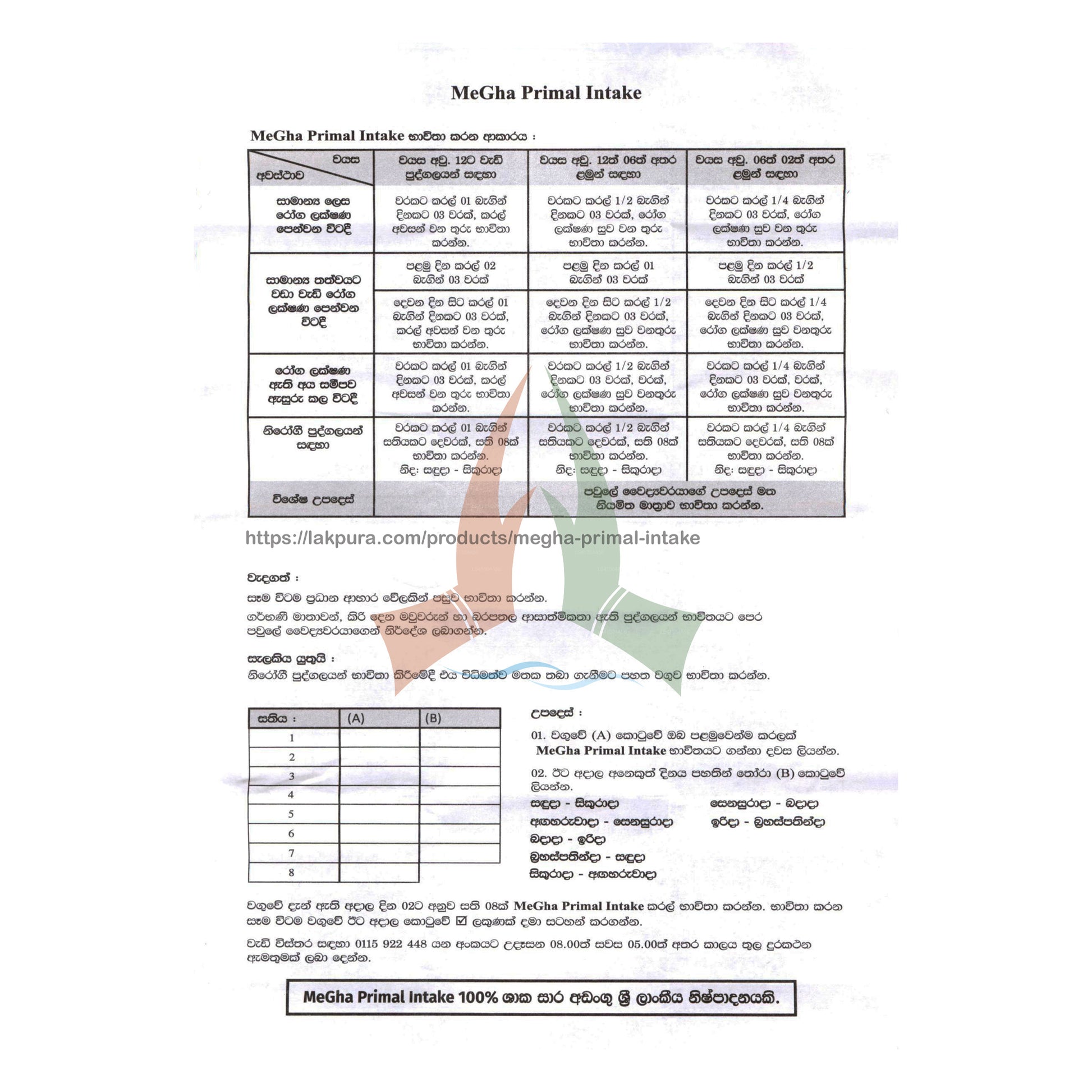 MeGha Primal Intake is a 100% natural food supplement invented to enhance immunity in the human body and contains no artificial colours, flavours and preservatives. It is manufactured in Sri Lanka in an ISO 22000 and GMP certified facility. MeGha Primal Intake is developed with the aid of a diverse team of scientists and western doctors who have put in hours of research.