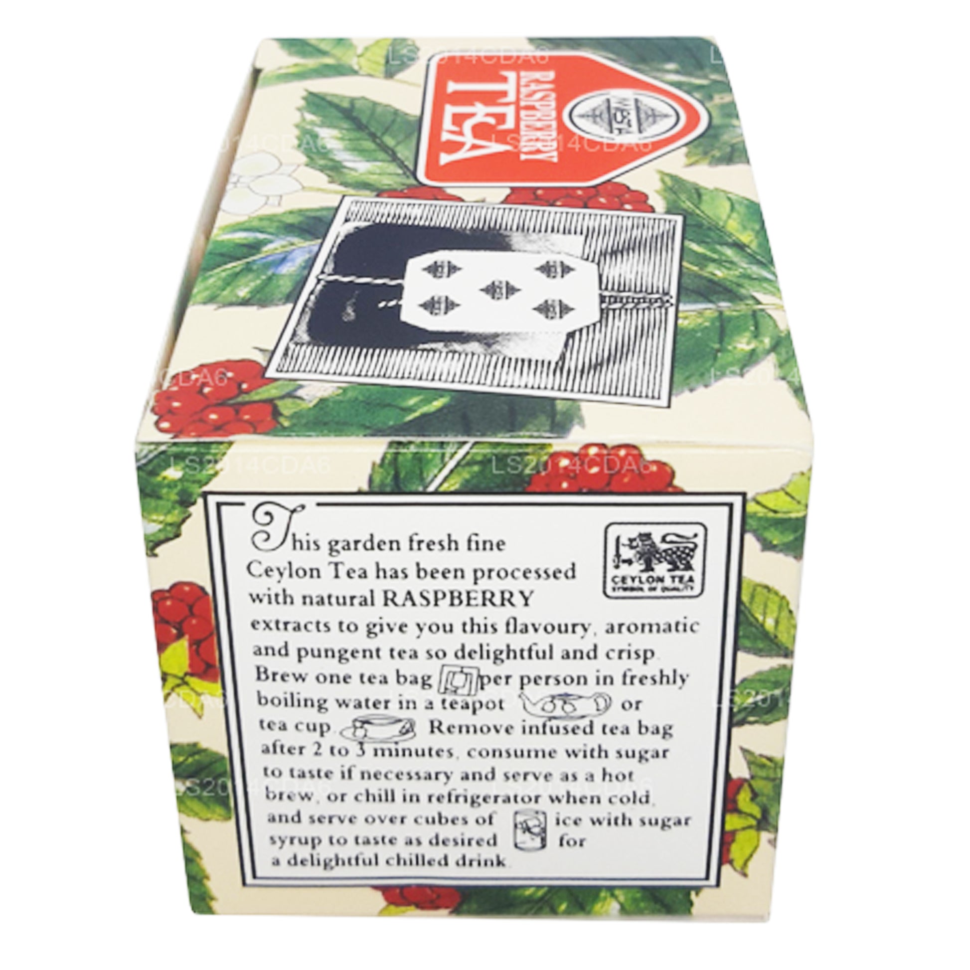 (SKU: LS2014CDA6) Ceylon Tea has been processed with natural RASBERRY extracts to give you this flavoury, aromatic and pungent tea so delightful and crisp brew one tea bag per person in freshly boiling water in a teapot or tea cup. Remove infused tea bag after 2 to 3 minutes, consume with sugar to taste if necessary and serve as a hot brew or chill in refrigerator when cold and serve over cubes of ice with sugar syrup to taste as desired for a delightful chilled drink.