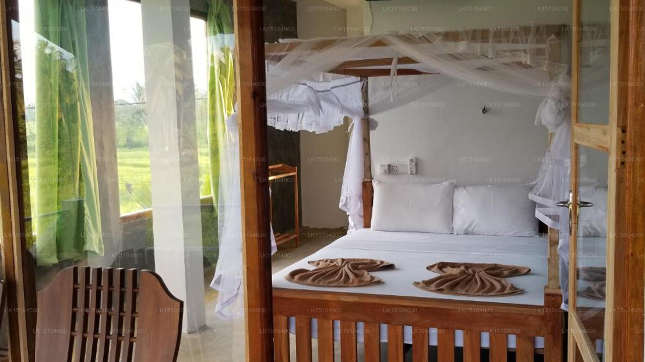 The guesthouse features 11 air-conditioned rooms, each designed with comfort and simplicity in mind. Rooms are equipped with private bathrooms featuring rainfall showers and bidets, and some offer balconies or patios with views of the surrounding rice fields and Sigiriya Rock.