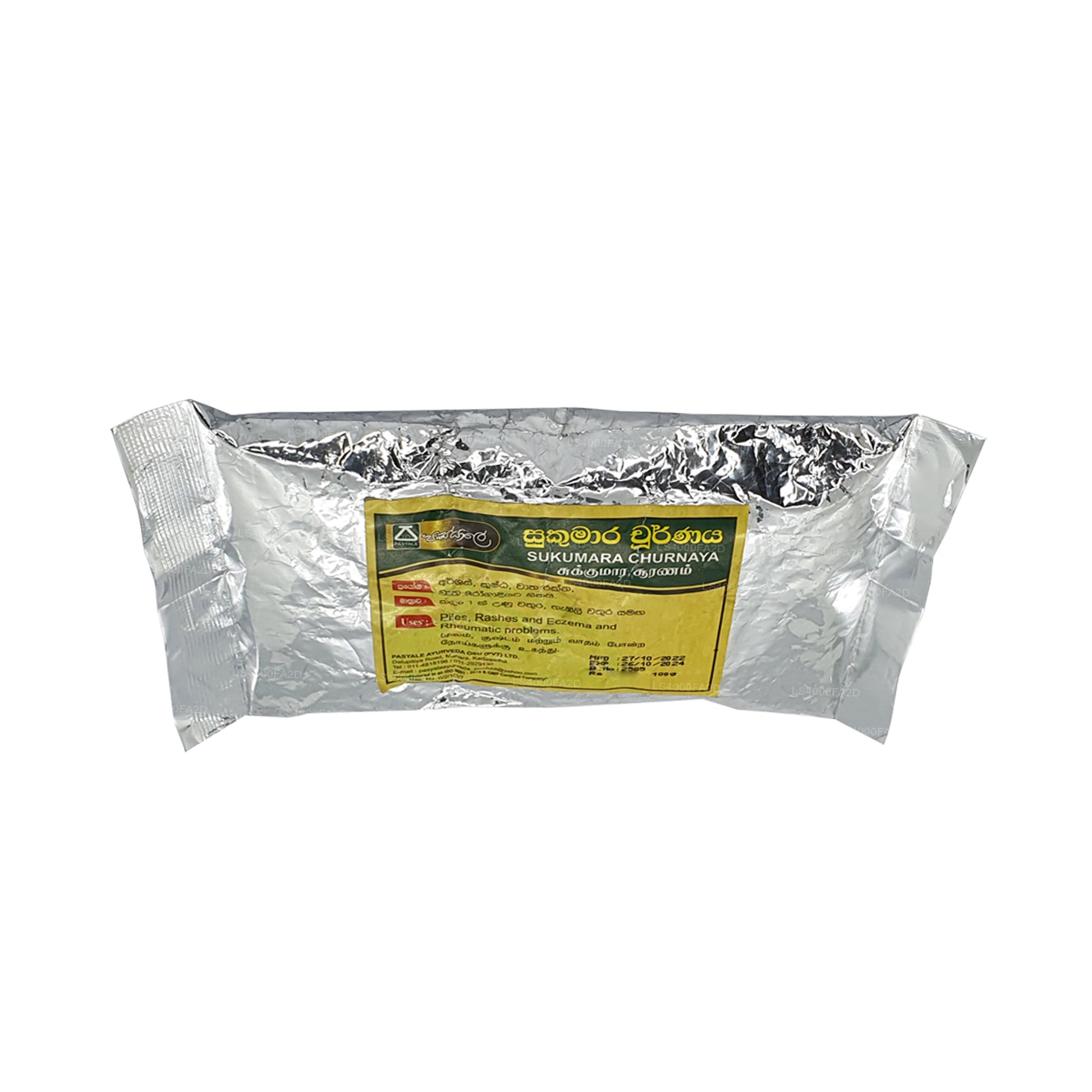 Pasyale Sukumara Churnaya is an Ayurvedic medicine for digestive problems. It helps with colic, heartburn, acidity, bloating, and gas. It also claims to treat hemorrhoids, rashes, flatulence, and certain eye diseases. As with any Ayurvedic remedy, consulting a qualified practitioner is recommended before use.