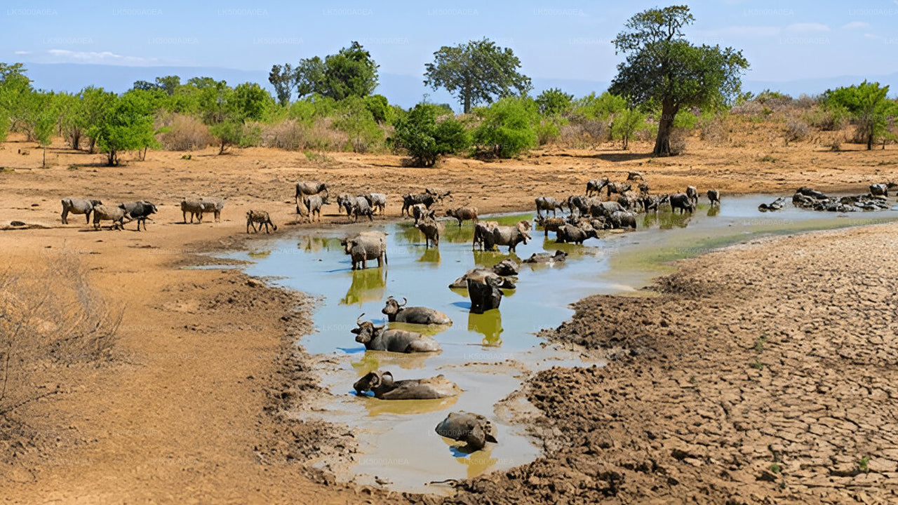 At Udawalawe National Park, enjoy a thrilling four-hour safari starting at 1:00 PM. Renowned for its large population of elephants, the park also hosts buffalo, crocodiles, jackals, and a myriad of bird species. Led by an experienced guide, explore open plains, forest patches, and lakes, offering ideal conditions for wildlife sightings and photography. This is an exceptional experience for nature lovers and adventure seekers.