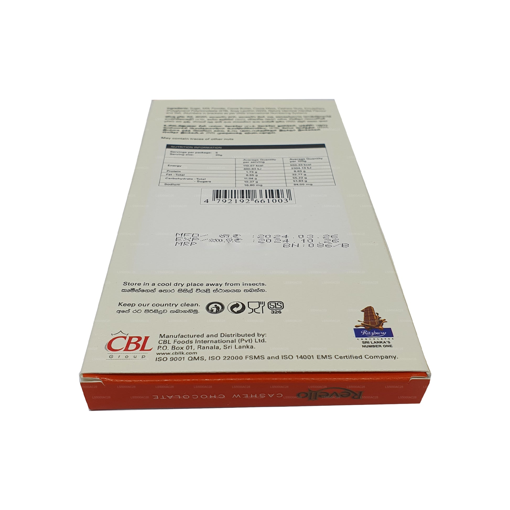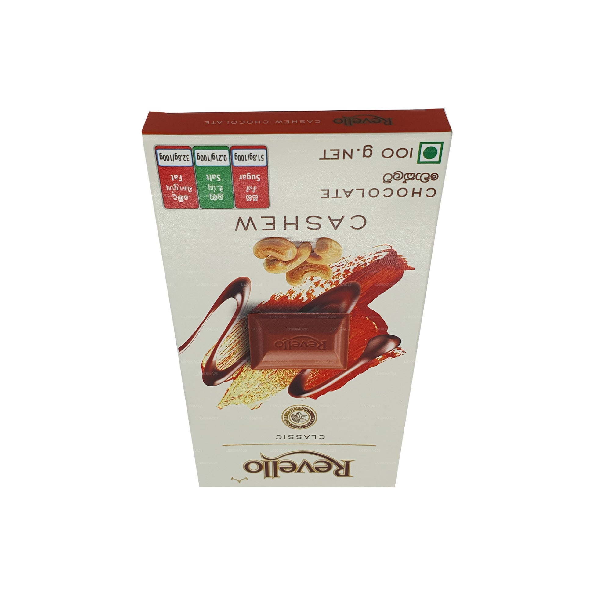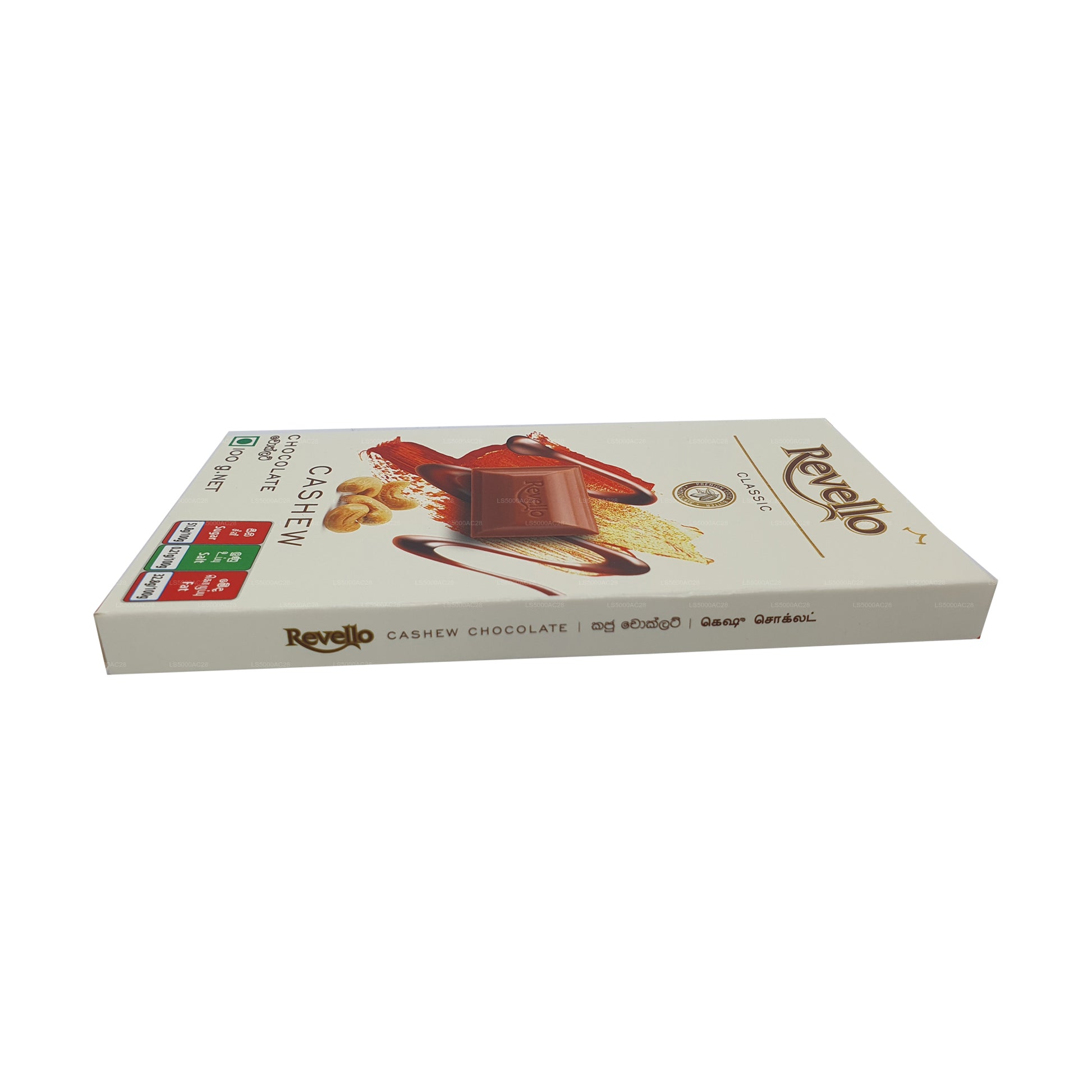 Revello Kešu čokoláda nabízí nádhernou kombinaci bohaté čokolády a máslových kešu ořechů. Každý kus má hladkou vnější vrstvu vysoce kvalitní čokolády obklopující celé pražené kešu ořechy. Výsledkem je luxusní pochoutka, která vyrovnává sladkost čokolády s ořechovou křupavostí kešu oříšků. Revello Kešu čokoláda, ideální pro dopřávání samostatně nebo jako doplněk nápojů, dezertů nebo dárků, slibuje uspokojivý chuťový zážitek s prémiovými ingrediencemi a vynikající chut