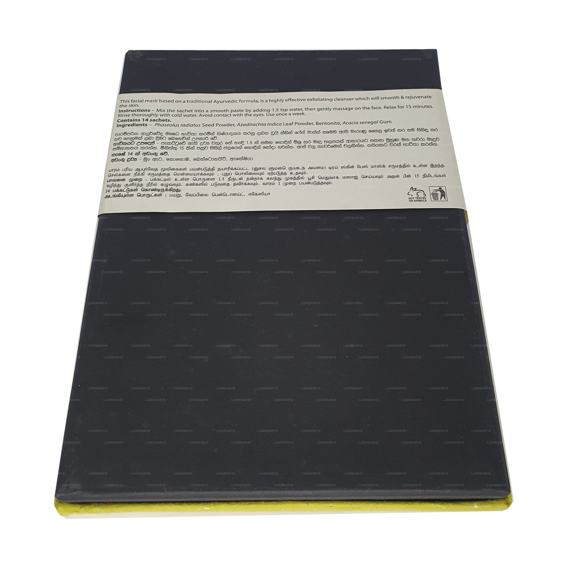 Siddhalepa Ayur Face Mask for Dry Skin (14 Sachets) is a rejuvenating facial treatment based on a traditional Ayurvedic formula. It acts as a highly effective exfoliating cleanser that smooths and revitalizes dry, tired skin. Each sachet contains a blend of natural ingredients including Phaseolus radiatus (Mung bean) seed powder, Azadirachta indica (Neem) leaf powder, Bentonite, Acacia Senegal gum, and Balsamodendron mukul (Guggul) resin. When mixed into a paste with water and applied, it gently cleanses, removes impurities, and leaves the skin refreshed and glowing.