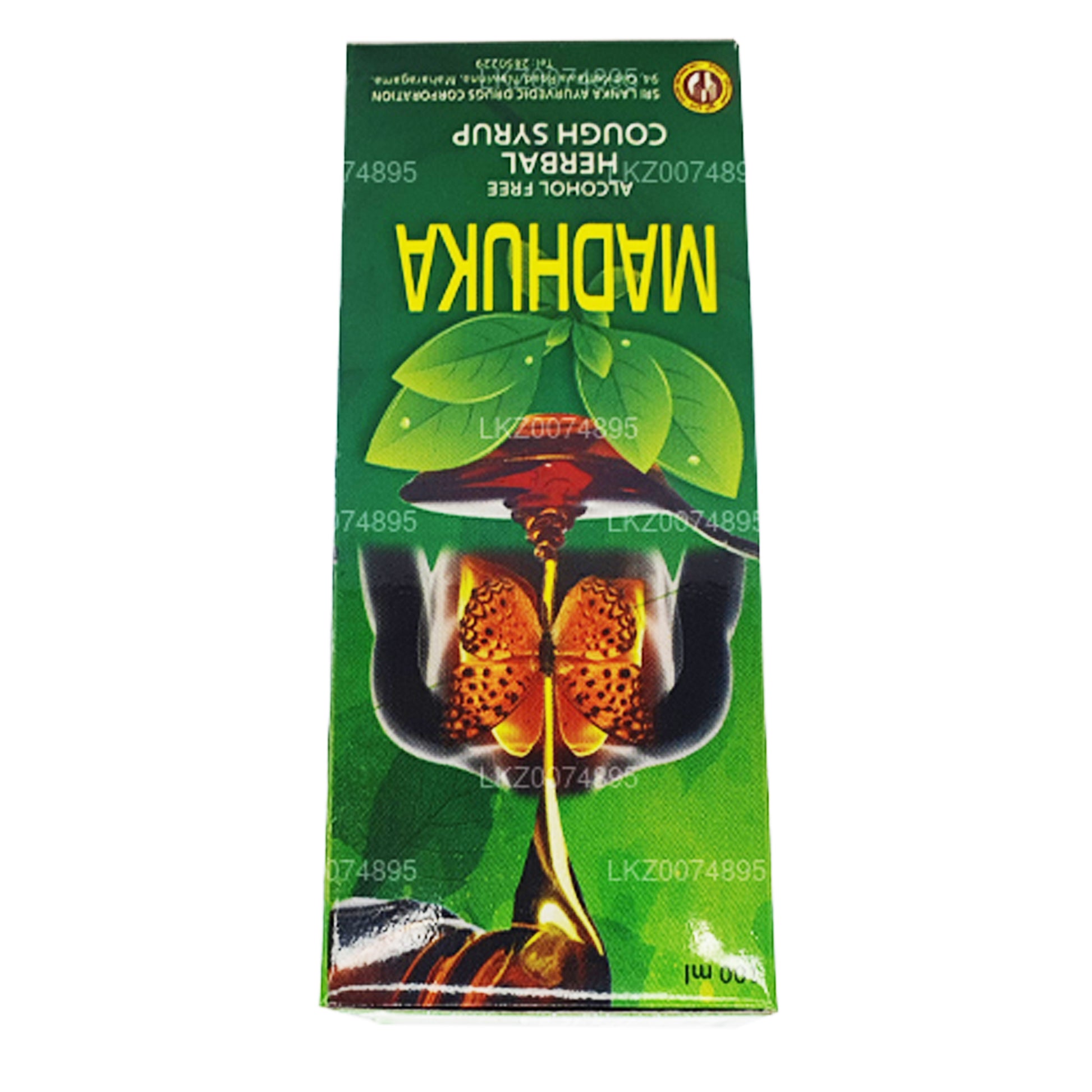 (SKU: LSZ0074895) Madhuka (Alcohol free) Herbal Cough Syrup 100ml, a product of Ayurvedic Drugs Corporation.
