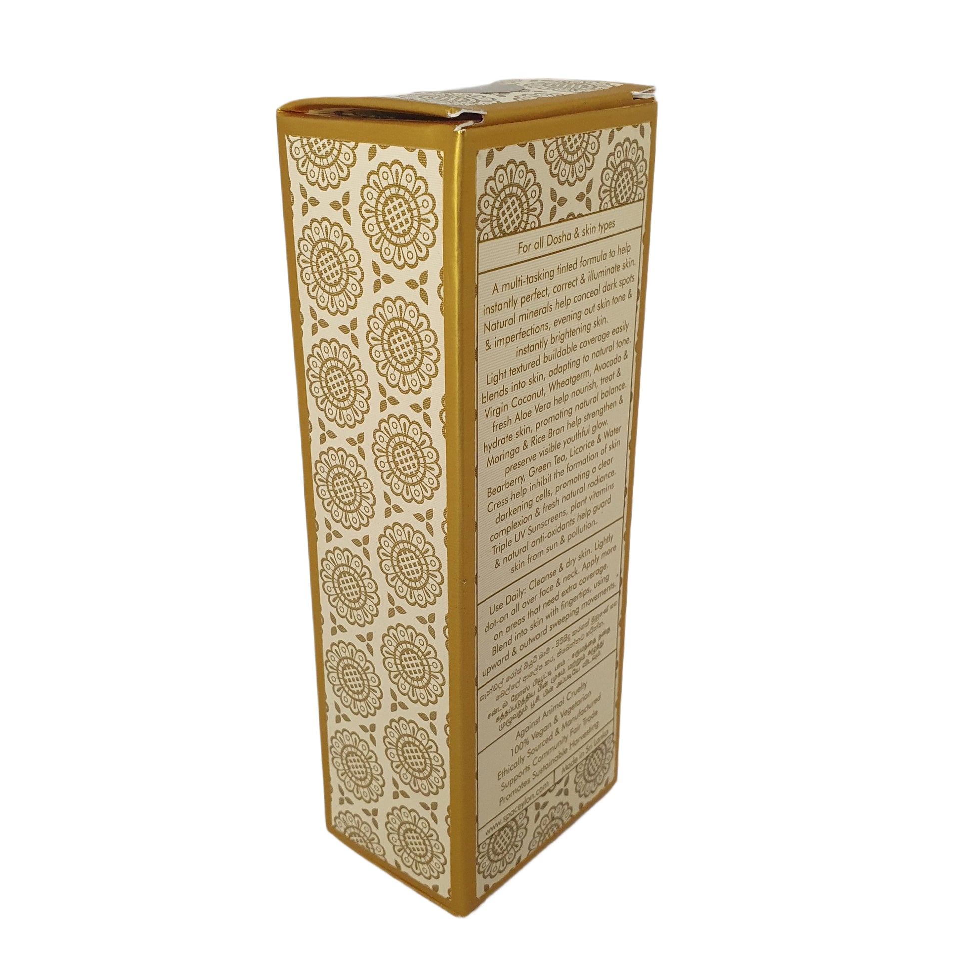 Spa Ceylon Sandal Rose Beauty Balm je luxusní multifunkční tónovaná receptura, která pomáhá okamžitě zdokonalit, korigovat a osvětlit vaši pleť. Je naplněn přírodními minerály, zakrývá tmavé skvrny a nedokonalosti a zároveň vyrovnává tón pleti pro hladký, zářivý povrch. Jeho lehká, sestavitelná textura se snadno mísí a přizpůsobí se vašemu přirozenému tónu, takže pokožka vypadá bez námahy bezchybně. Obohacený o ajurvédské rostlinné látky a trojité UV opalovací krémy vyživuje, hydratuje a chrání pokožku před stresem prostředí a podporuje mladistvou, zářivou záři