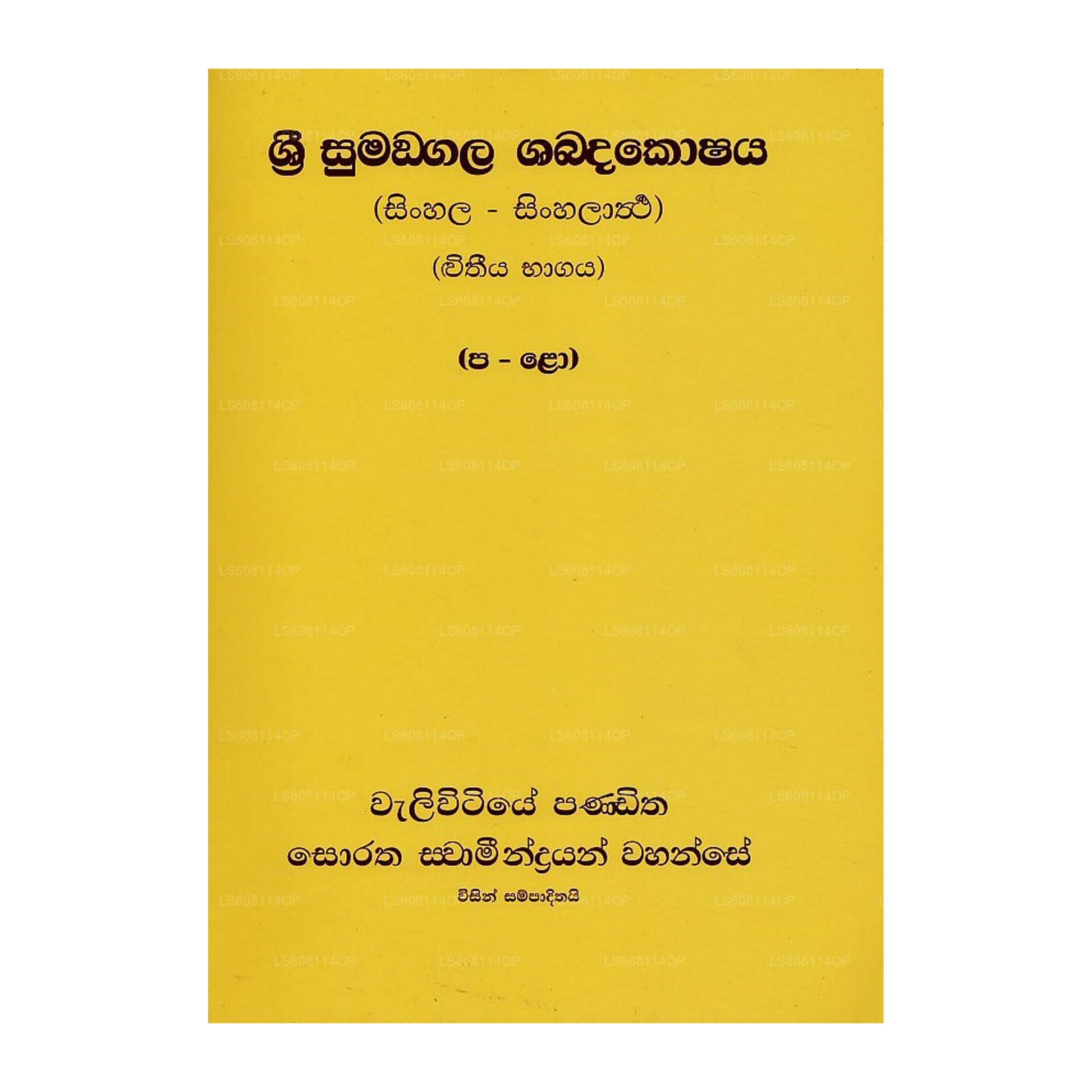| Description | Sri Sumangala Shabdakoshaya Second Volume by Waliwitiye Panditha Soratha Swameendrayan Wahanse |