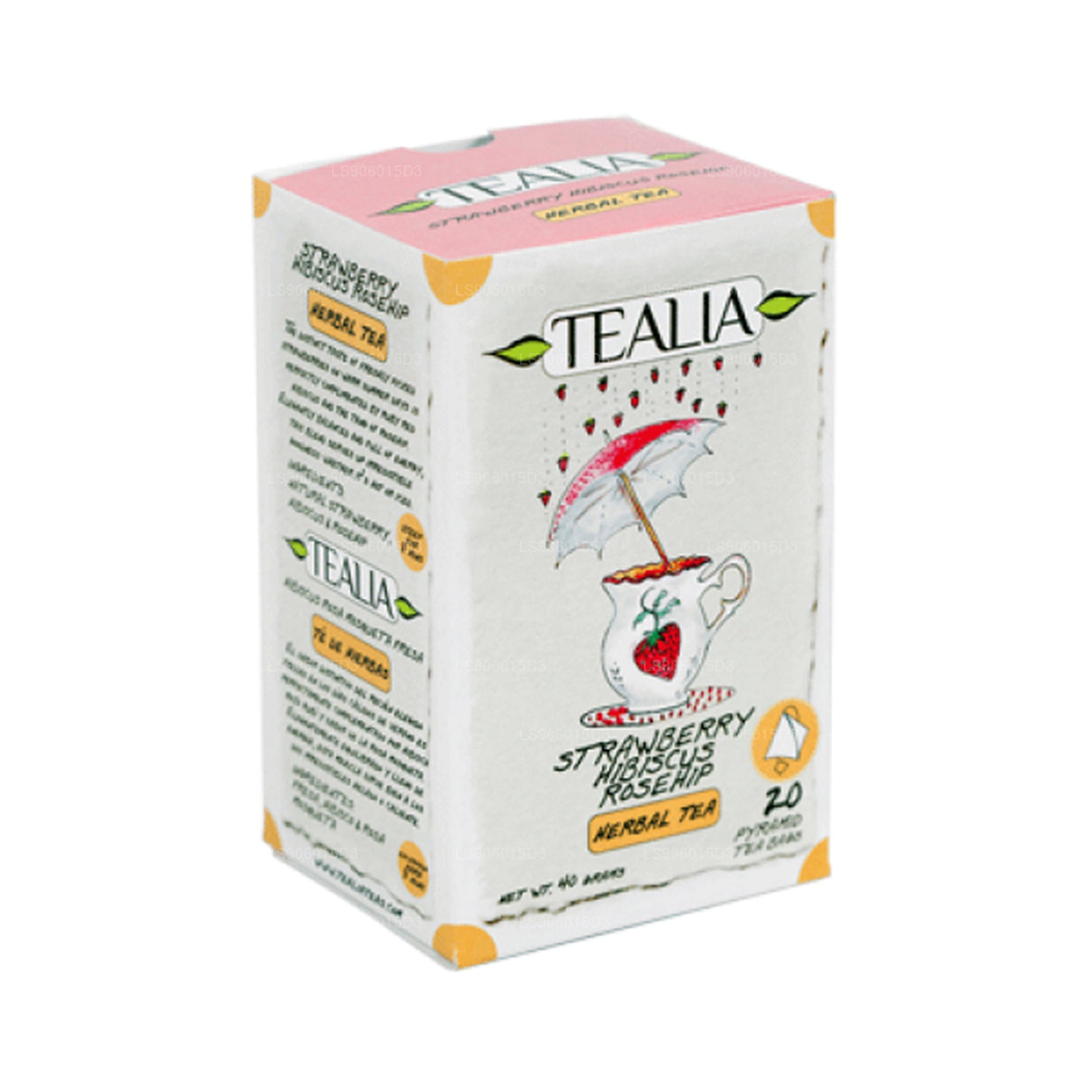 Tealia Strawberry Hibiscus Rosehip – Pyramid Infusion Bags (40g) offers a vibrant and refreshing blend, combining the sweet taste of freshly picked strawberries with the tartness of ruby red hibiscus and the zesty tang of rosehip. Elegantly balanced and bursting with natural energy, this infusion delivers a delightful experience whether enjoyed hot or iced. Each pyramid bag ensures a full, rich flavor in every cup.