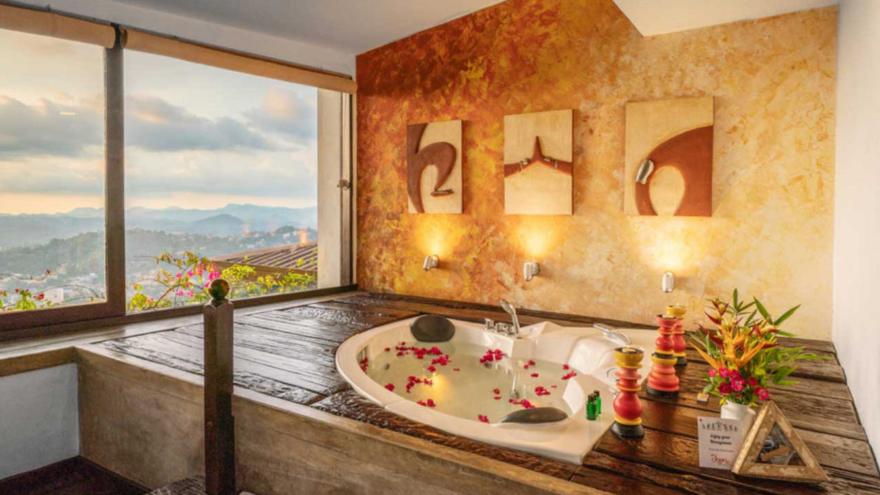 (SKU: LK15009FC0) The Theva Residency, nestled in the scenic hills of Kandy, offers a sublime retreat with its boutique charm and modern comforts. Set amidst lush landscapes, this haven boasts an outdoor pool, sauna, and hammam for relaxation. Immerse yourself in elegant accommodations, featuring spa baths and plush amenities. The hotel's restaurant and bar provide culinary delights, while shared lounges and a library offer spaces to unwind. Exciting activities like billiards and darts add to the entertainment. With a prime location near attractions like the Ceylon Tea Museum, Theva Residency promises a serene escape complemented by impeccable service and warm hospitality.