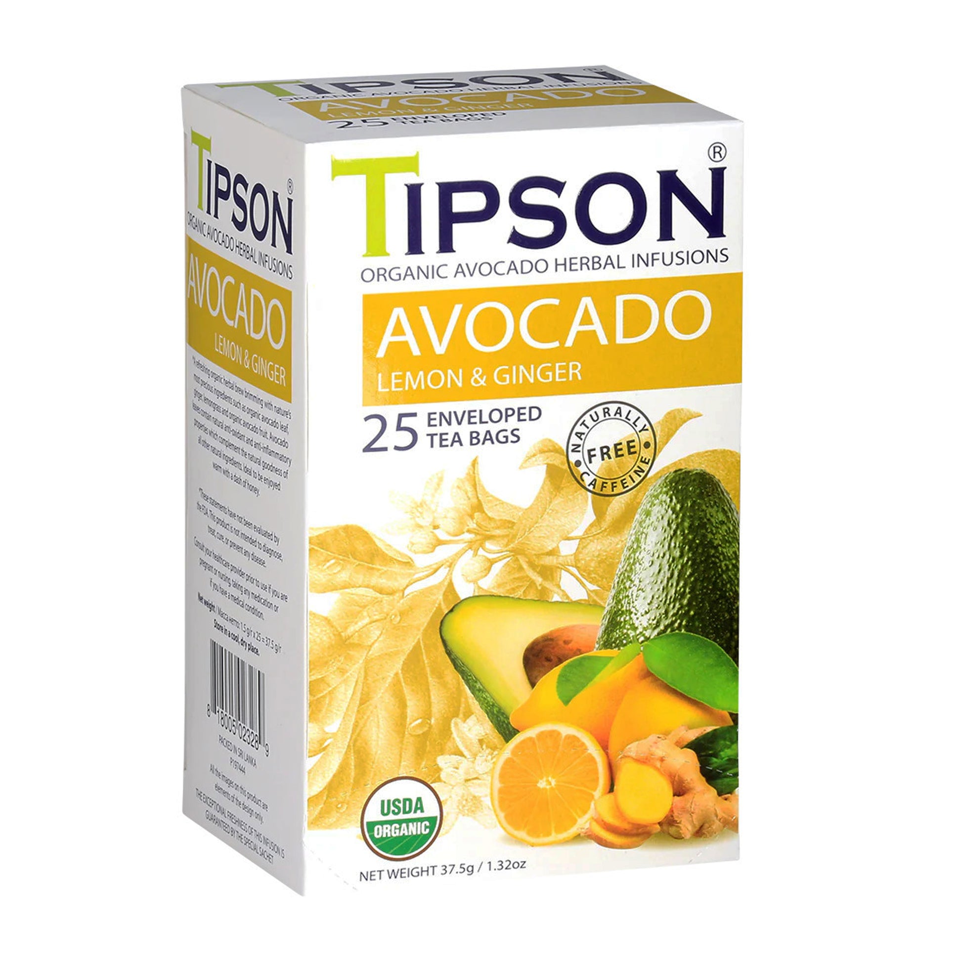 Tipson Organic Avocado with Lemon and Ginger (37.5g) 25 Enveloped Tea Bags