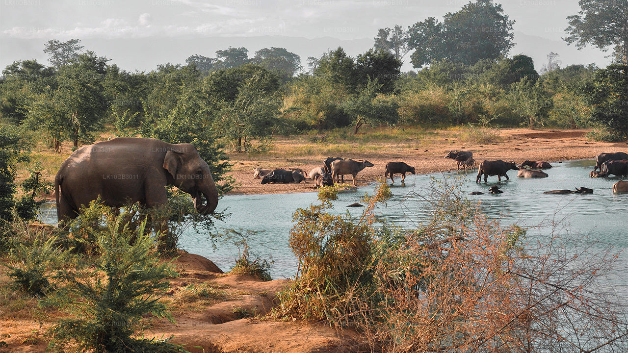 This safari takes you on a ride through the Minneriya National Park. Enjoy the sight of over 150 elephants congregating in one place during the famous Great Elephant Gathering, which happens in the dry season between May to October. In addition to elephants, get a chance to also see many mammals, birds, reptiles and amphibians in the scrublands, forests and other areas.