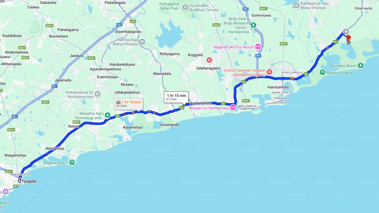 Ahangama City to Tissamaharama City Private Transfer