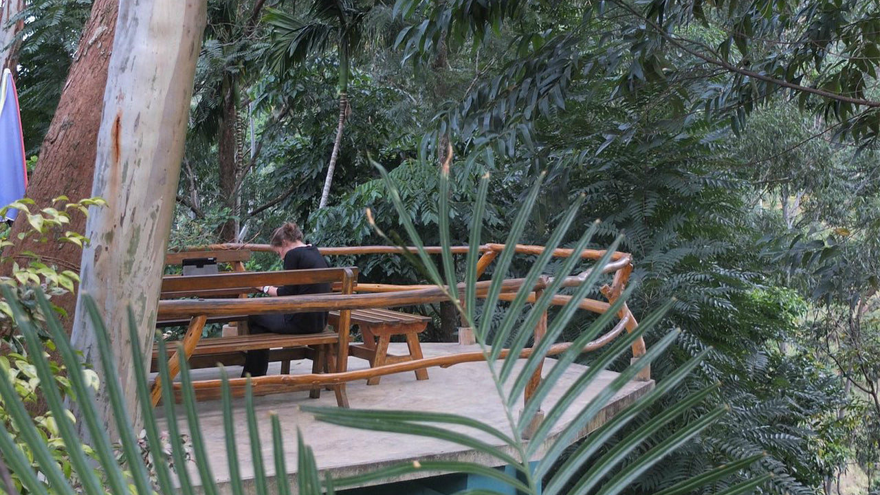 Accommodation:The guesthouse features three beautifully designed rooms, with two offering 180-degree panoramic views of the jungle and the waterfall. The third room comes with French doors that open onto a spacious veranda, allowing guests to immerse themselves in nature. Each room is designed to provide a homey, cozy atmosphere, making the stay relaxing and comfortable.