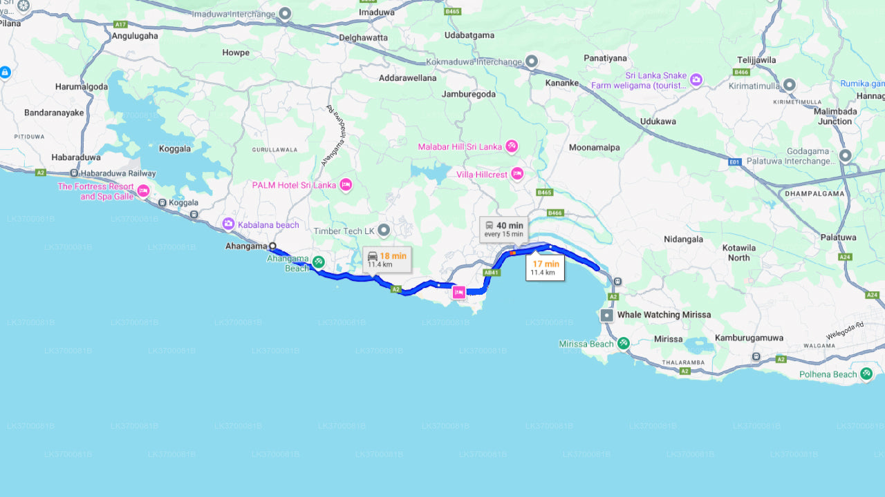 Ahangama City to Tissamaharama City Private Transfer