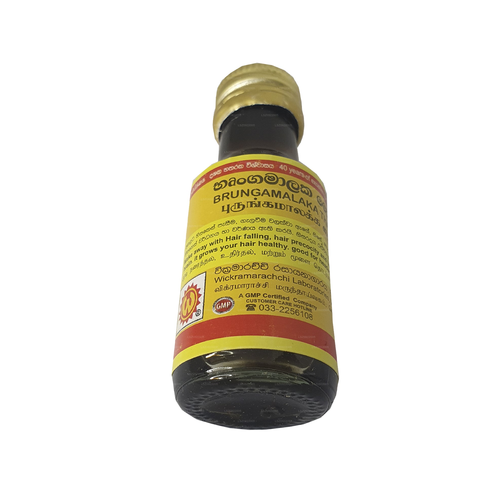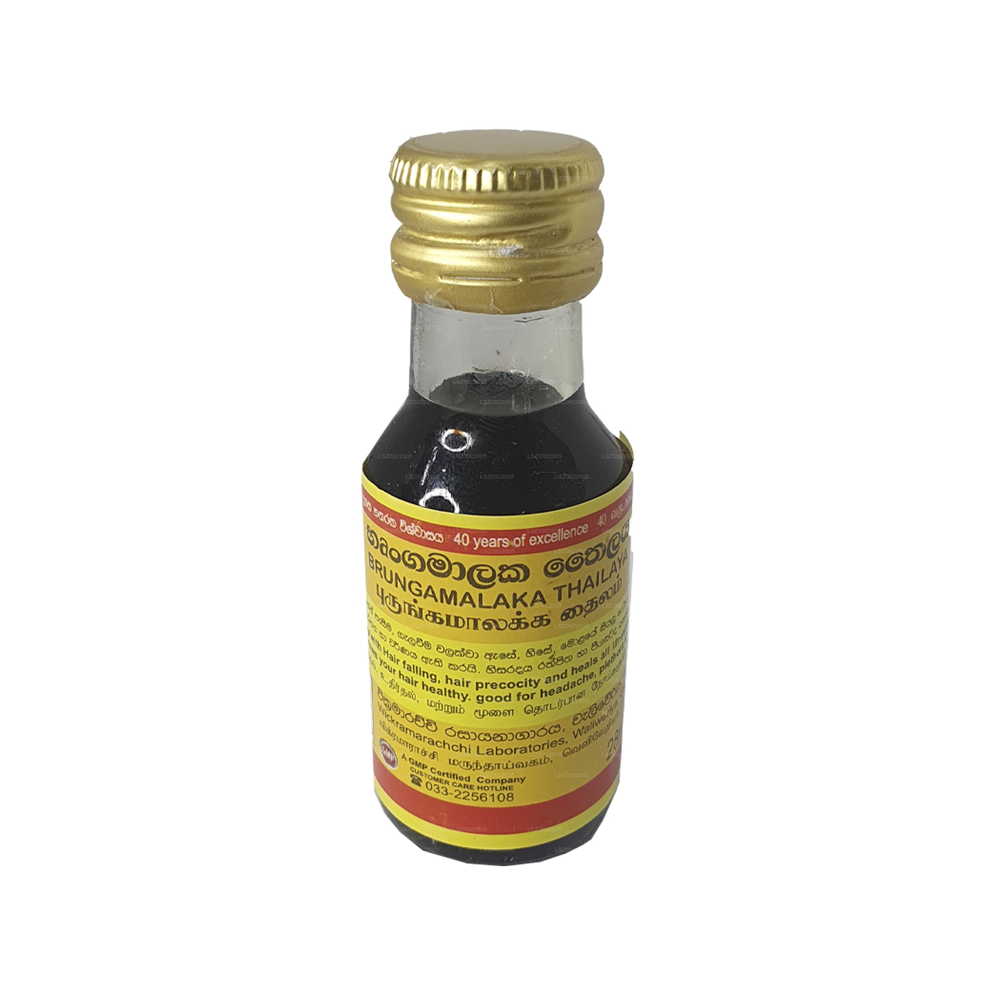 Wickramarachchi Labs Brungamalaka Thailaya is a specialized hair treatment designed for effective head massage. Formulated to address various hair concerns, it promotes hair re-growth, prevents premature graying, and tackles issues like split ends and dry, brittle hair. This thailaya nourishes both the scalp and hair, resulting in a lustrous and healthy appearance. With a unique blend of ingredients, it offers a comprehensive solution to common hair problems, making it a valuable addition to a regular hair care routine.