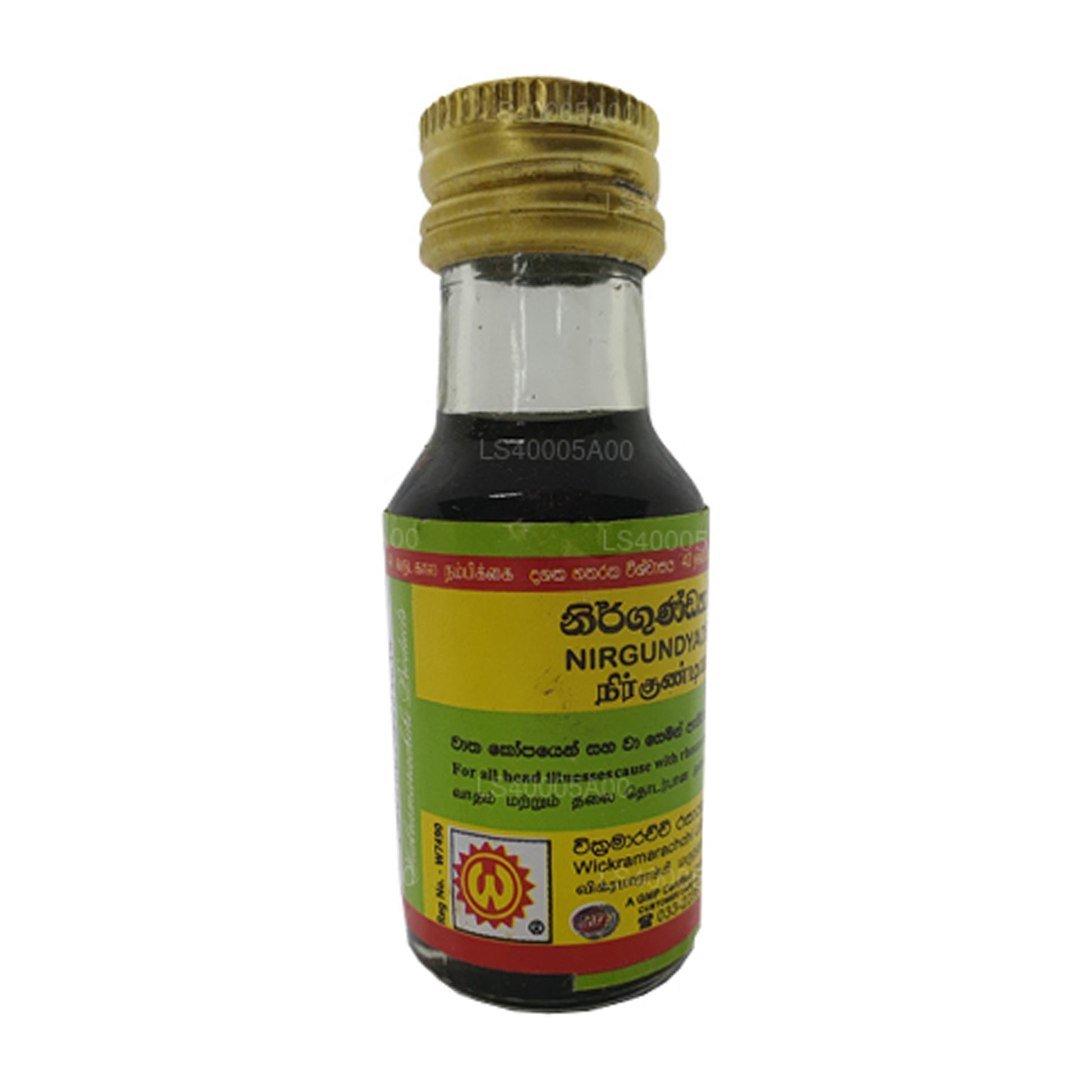 (SKU: LS4000BC32) Nirgundyadi Thailam is a medicated oil described in the Ayurvedic classical text book 'Sarvaroga Chikitsa Ratnam'. This medicated oil is a combination of several herbs like Nirgundi (Vitex negundo), Bala (Sida cordifolia), Guloochi (Tinospora cordifolia), Aswagandha (Withania somnifera) etc. in a base of coconut oil.